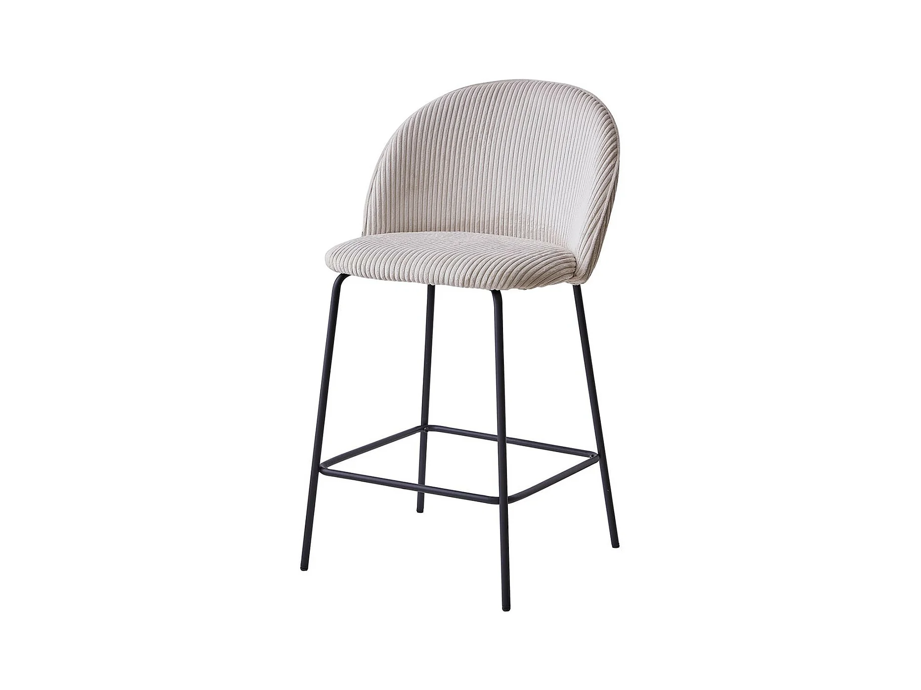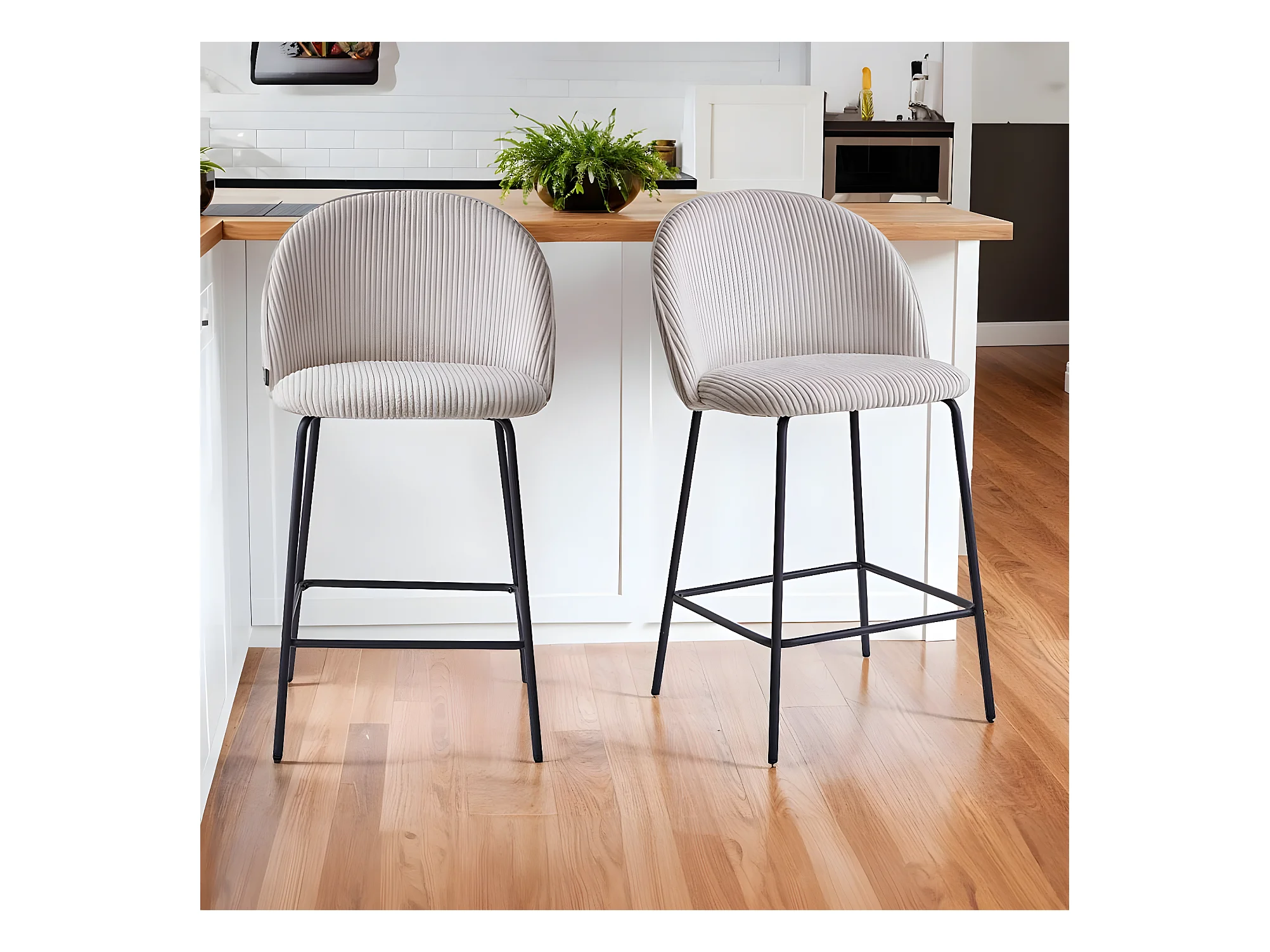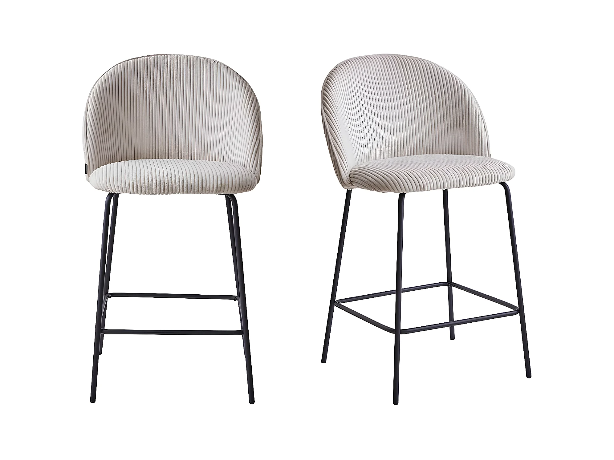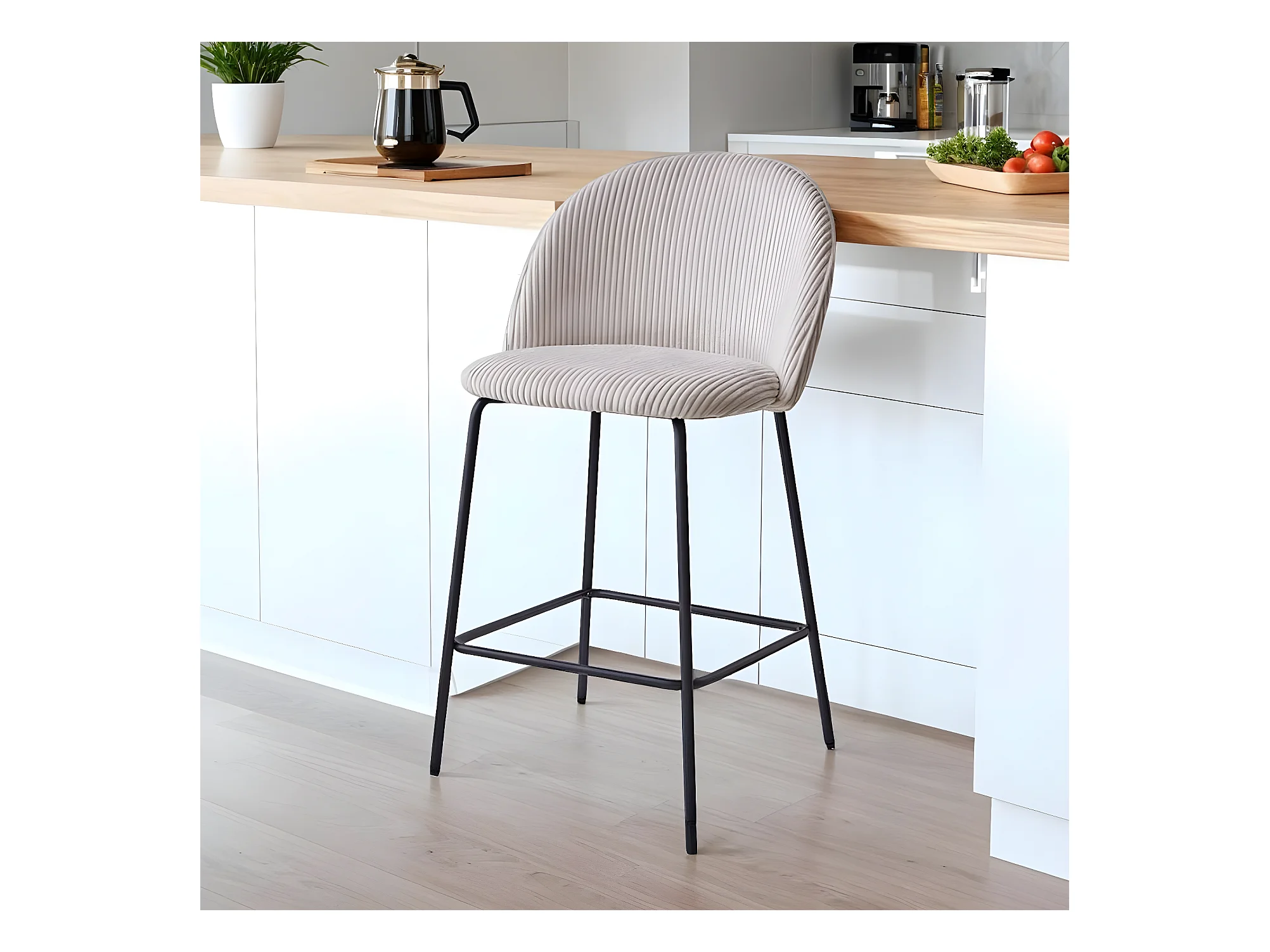 Lot de 2 tabourets de bar en velours côtelé beige, piètement noir - Alta