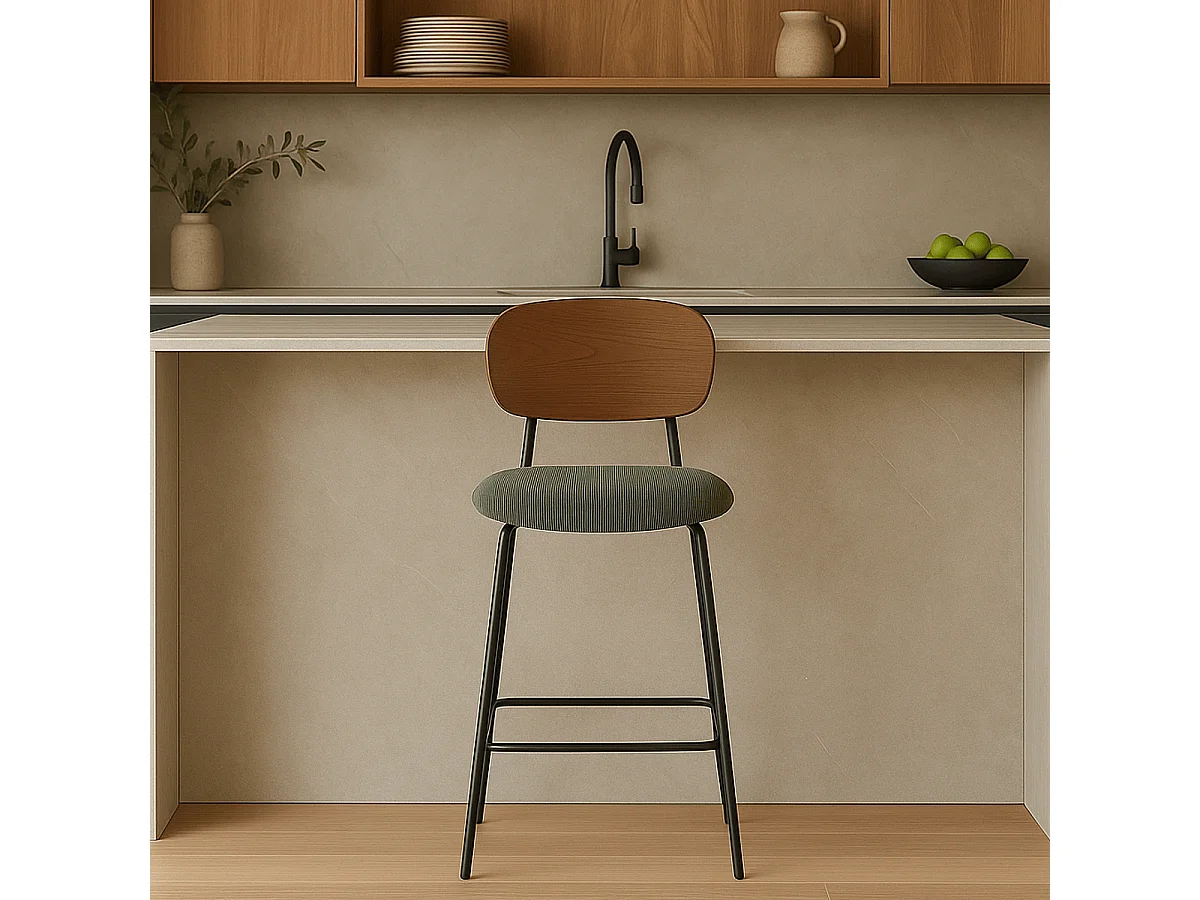 Lot de 2 tabourets de bar en velours côtelé vert kaki - Dany