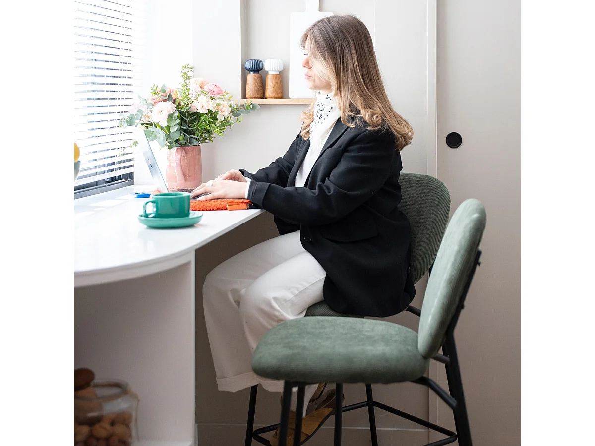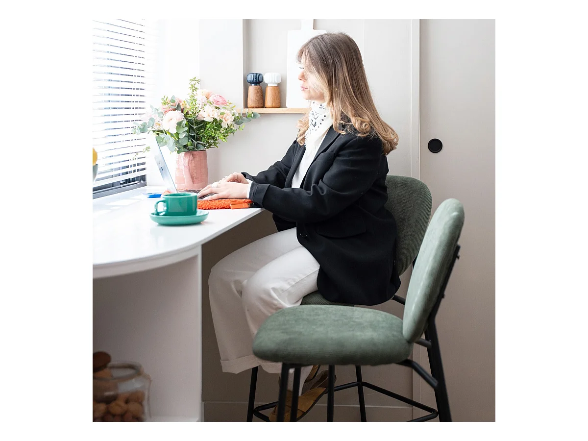 Lot de 2 tabourets de bar en velours côtelé vert, piètement métal noir - Betty