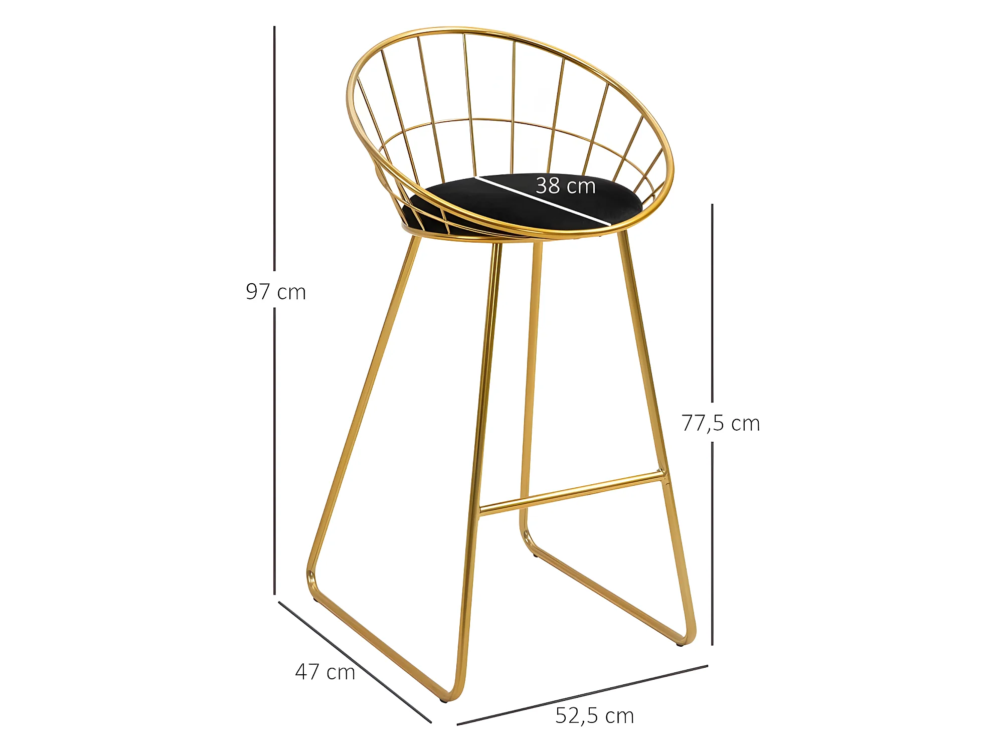 Lot de 2 tabourets de bar GIANNI doré et noir