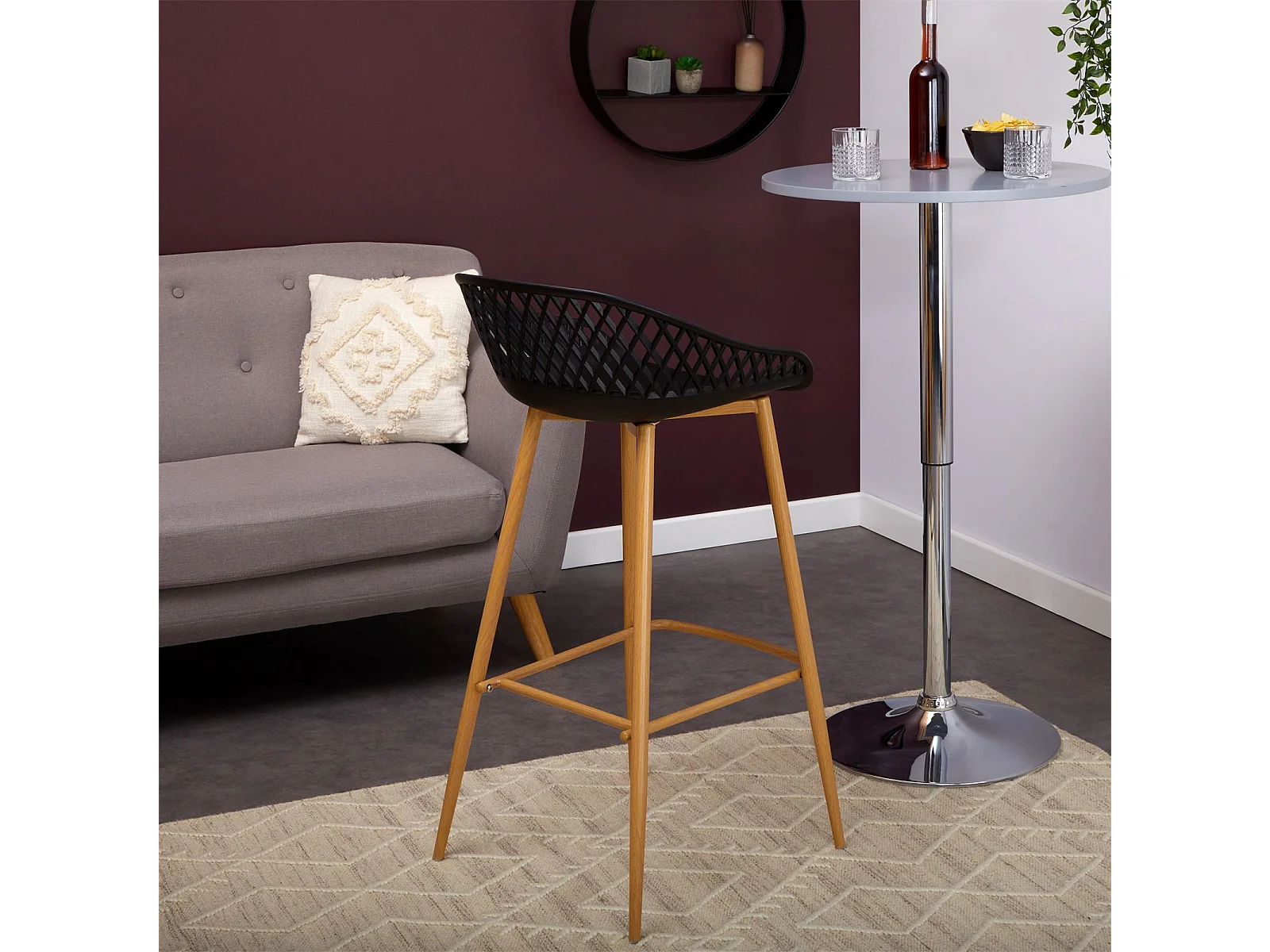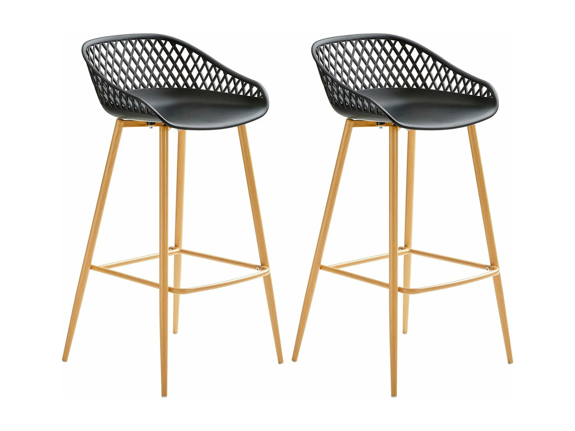 Lot de 2 tabourets de bar IREK chaise haute cuisine ou comptoir au design retro en plastique noir et métal décor chêne, assise 75 cm