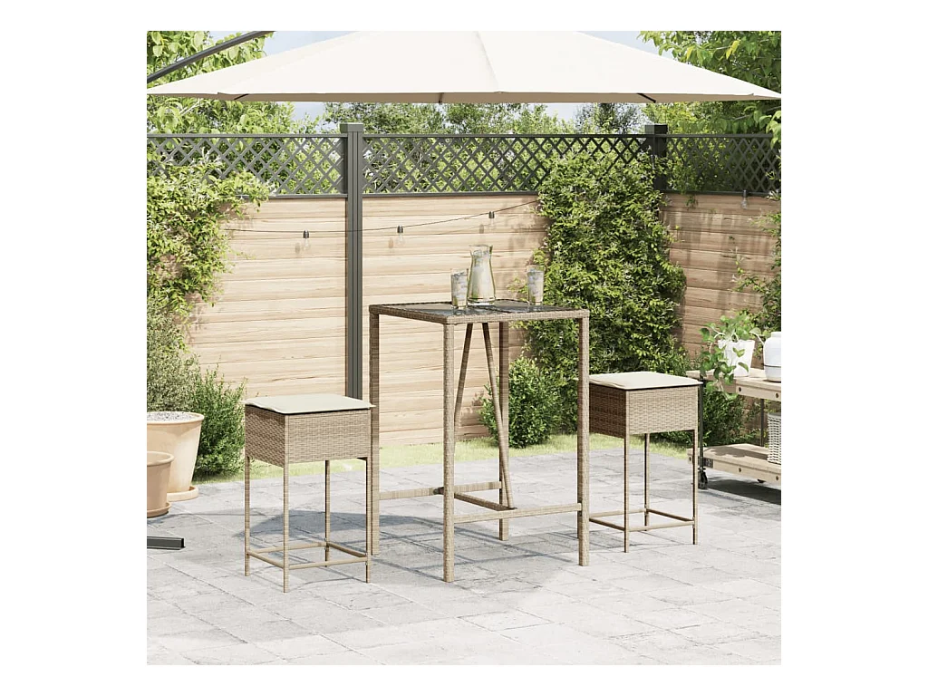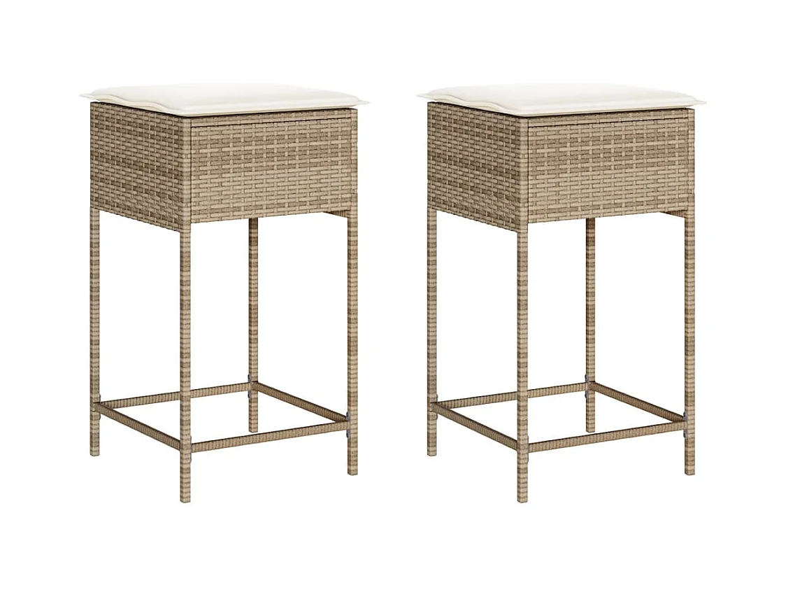 Lot de 2 Tabourets de bar jardin avec coussins beige poly rotin FR141255