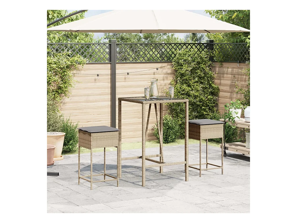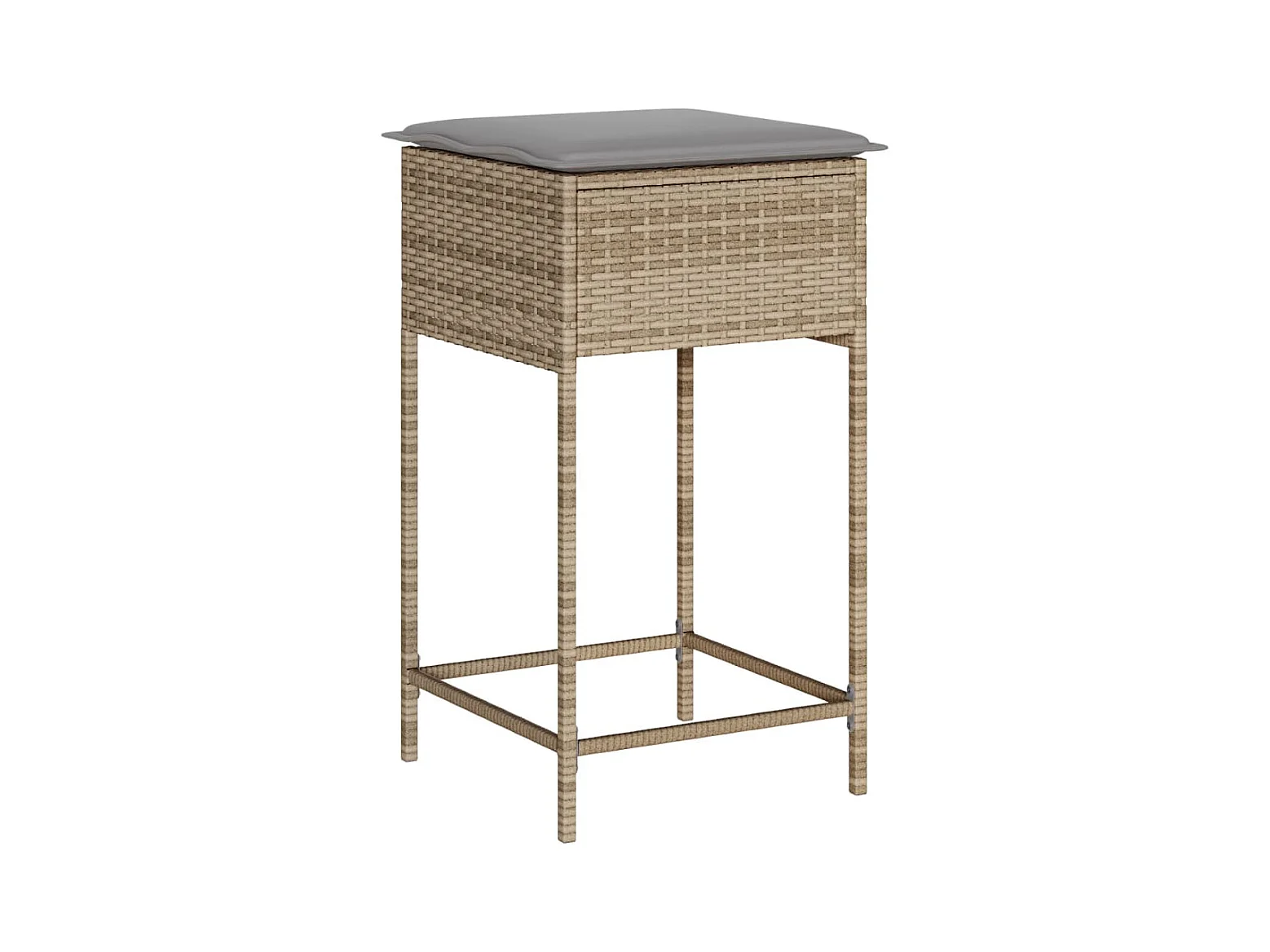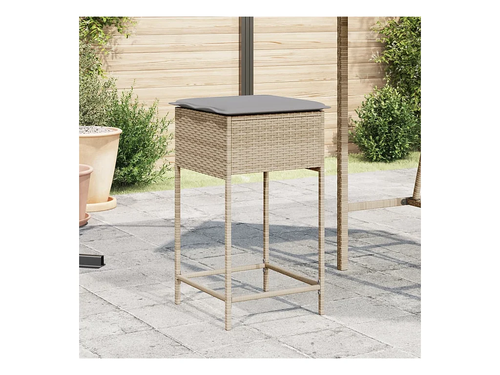 Lot de 2 Tabourets de bar jardin avec coussins beige poly rotin FR141255