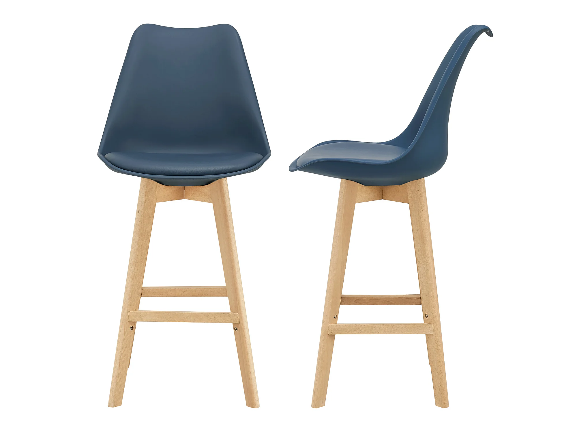 Lot de 2 Tabourets de Bar Lublin Simili Hêtre 105 x 48 x 58 cm Bleu [en.casa]