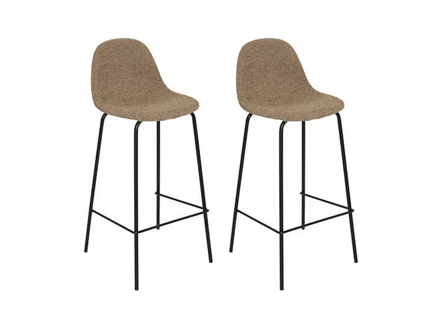 Lot de 2 tabourets de bar Vintage avec repose-pied piètement acier noir assise incurvée tissu marron effet vieilli