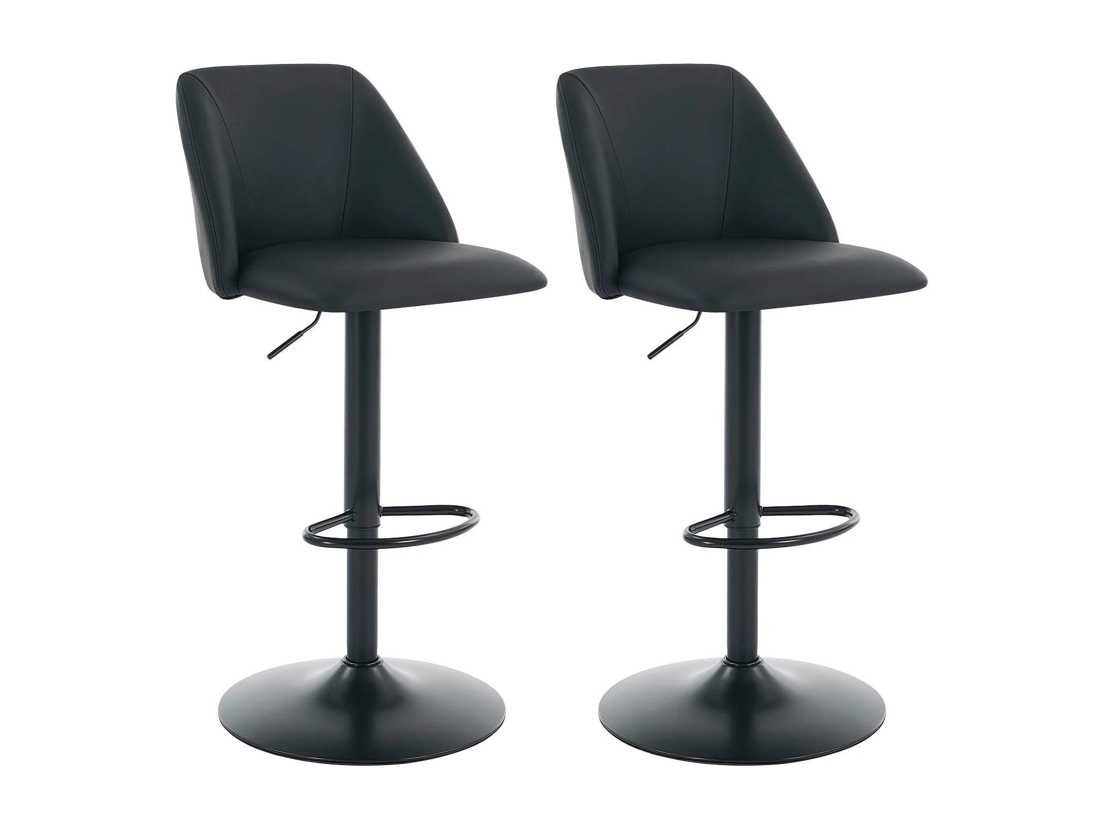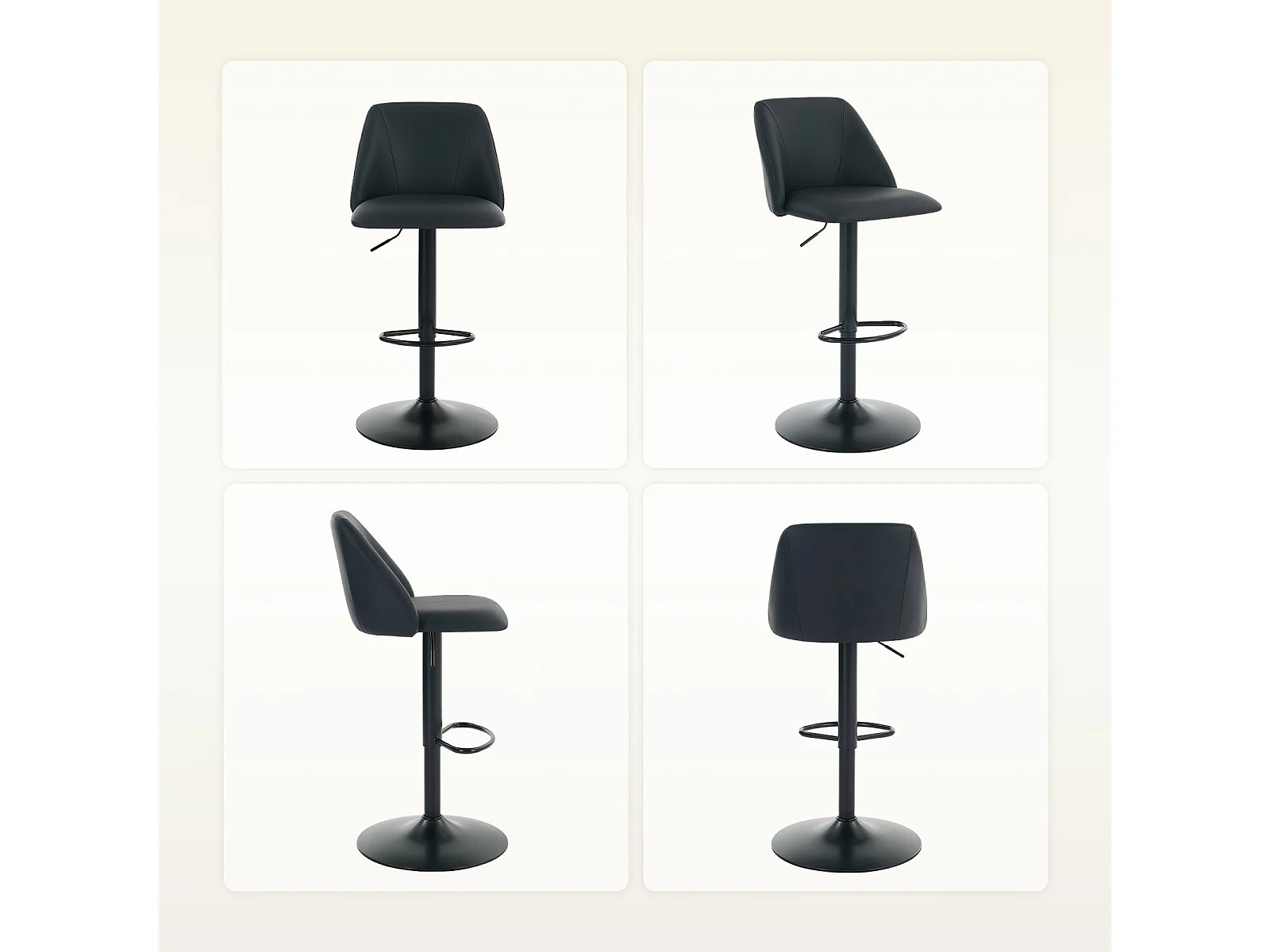 Lot de 2 Tabourets de Bar Modernes - Tabourets Tournants en Cuir PU Réglables avec Dossier Complet pour Comptoir, Cuisine, Salle à Manger - Noir