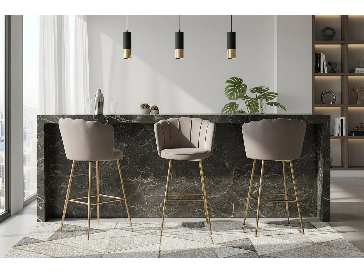 Lot 2 Tabourets de Bar Nymphea Velours Moka Pieds Gold
