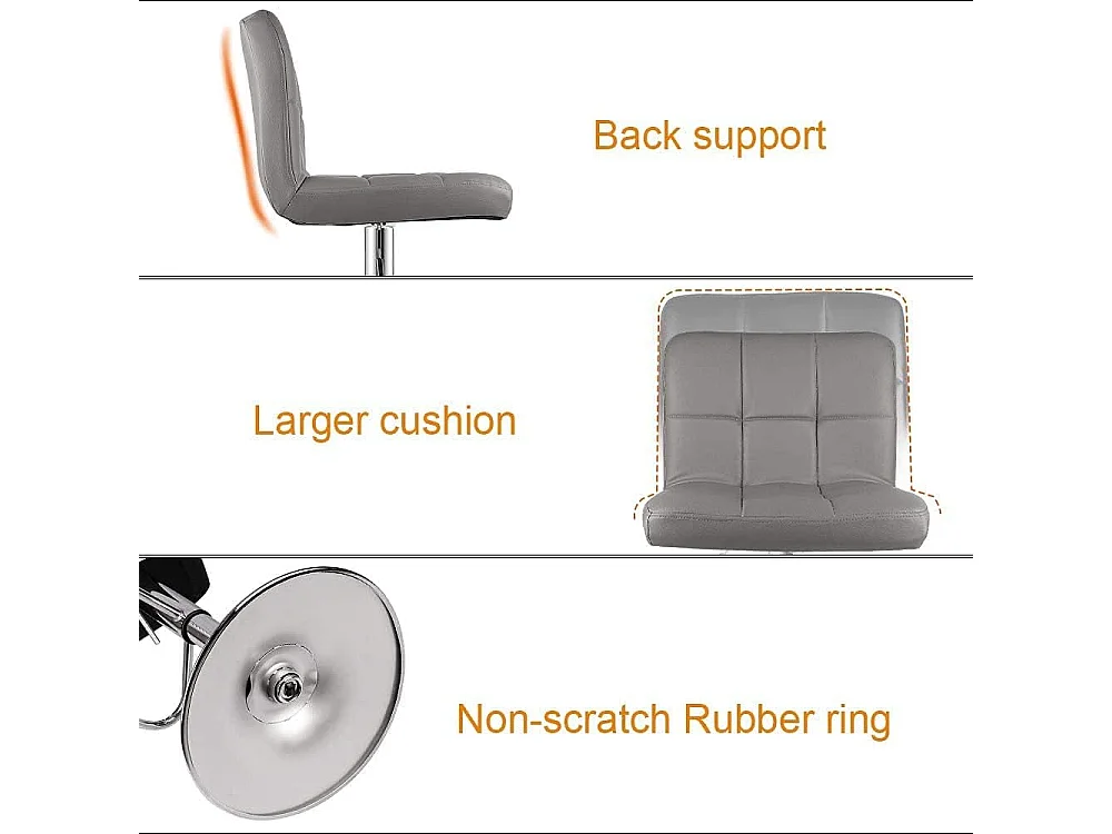 Lot de 2 tabourets de bar — pivotants à 360°, rembourrés, à hauteur réglable