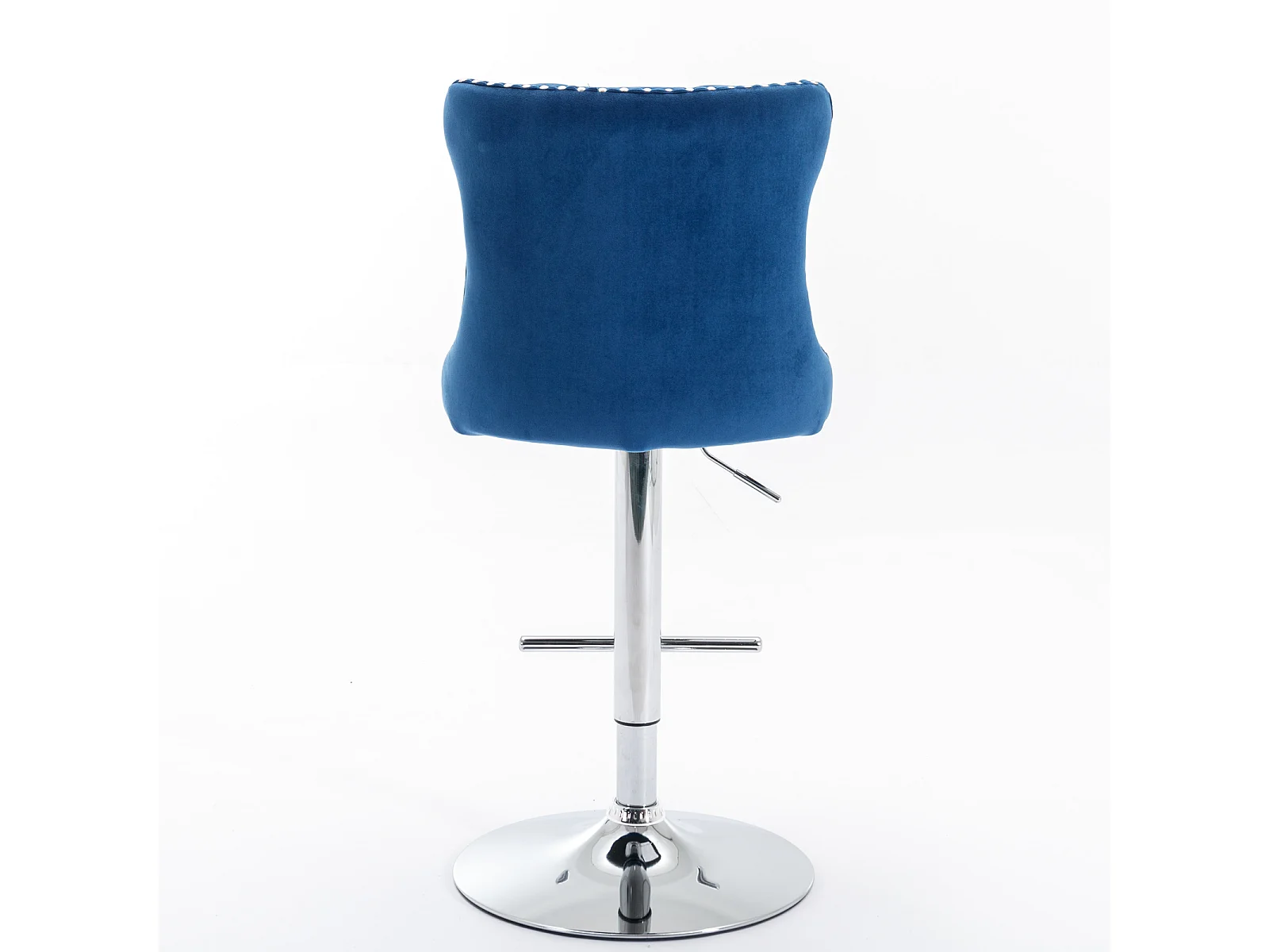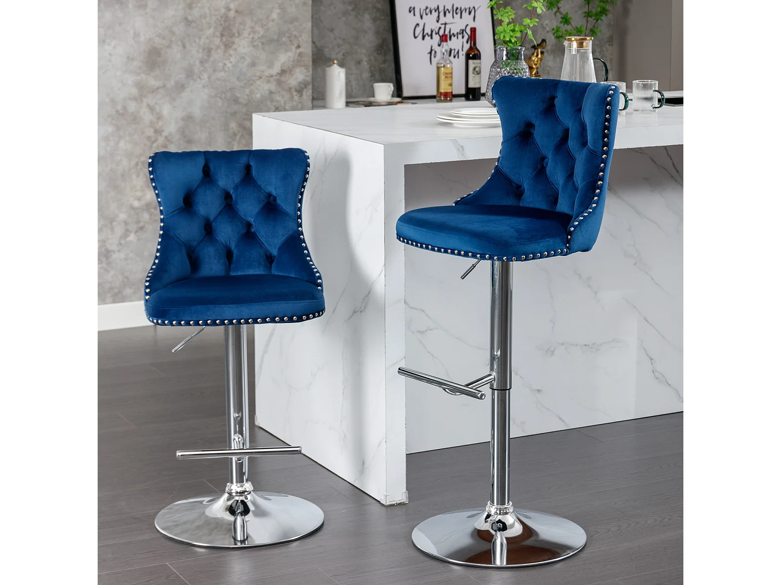 Lot de 2 tabourets de bar pivotants en velours - Hauteur réglable de 63,5 à 84 cm - Bleu et argent