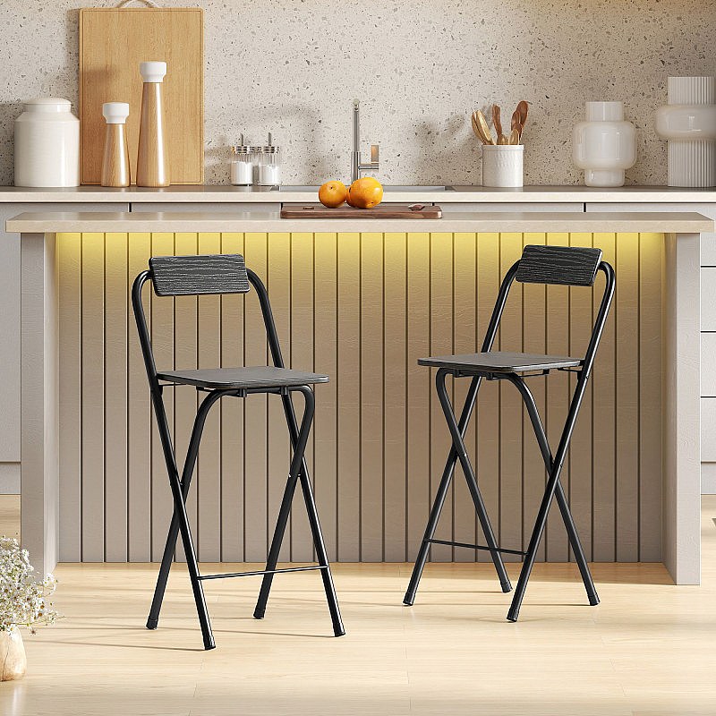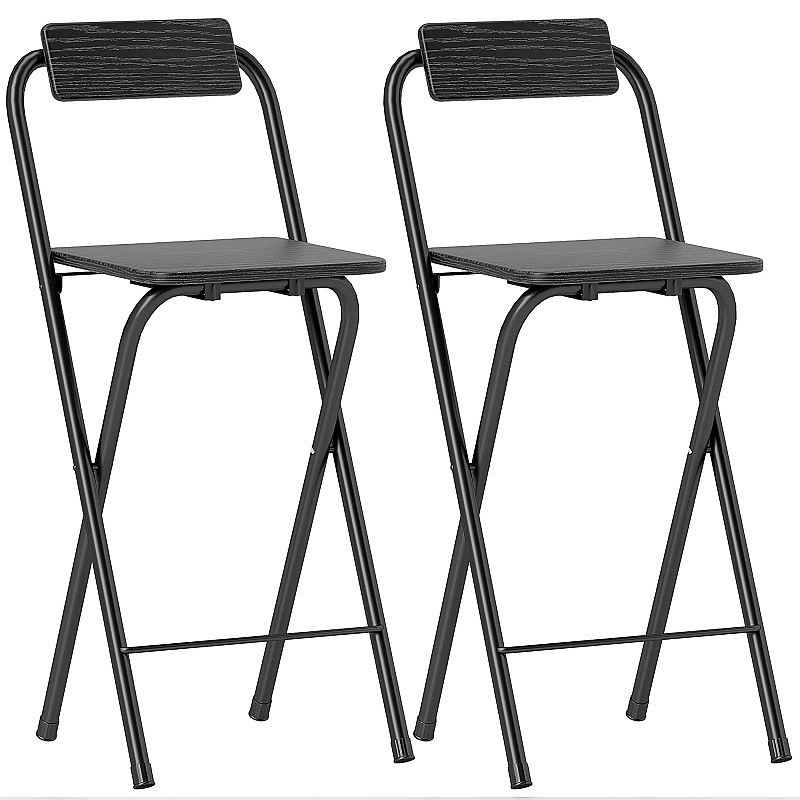 Lot de 2 tabourets de bar pliants avec structure en acier pour cuisine et salle à manger, noir