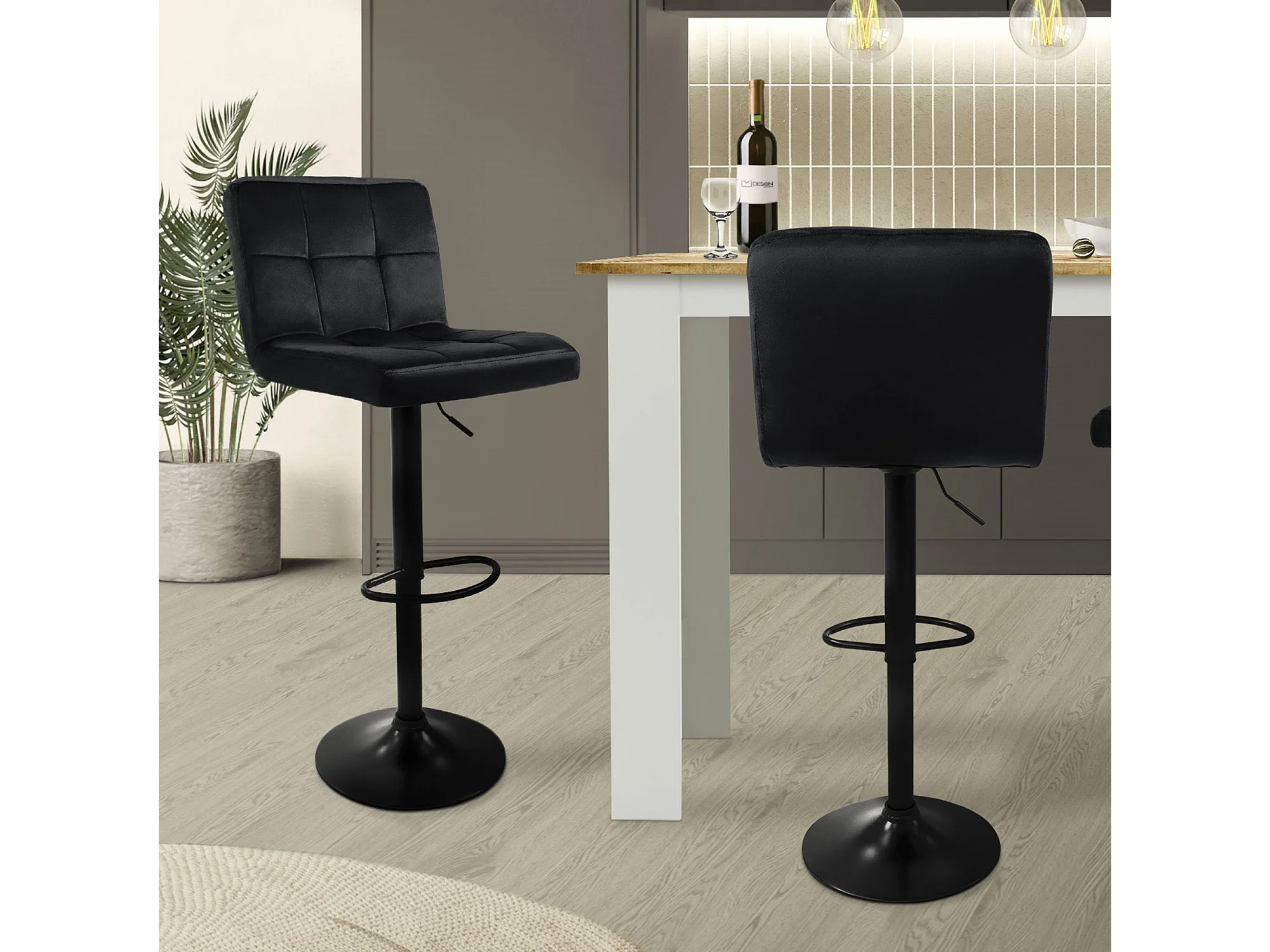 Lot de 2 tabourets de bar Réglable en hauteur Chaise de bar en velours Tabouret