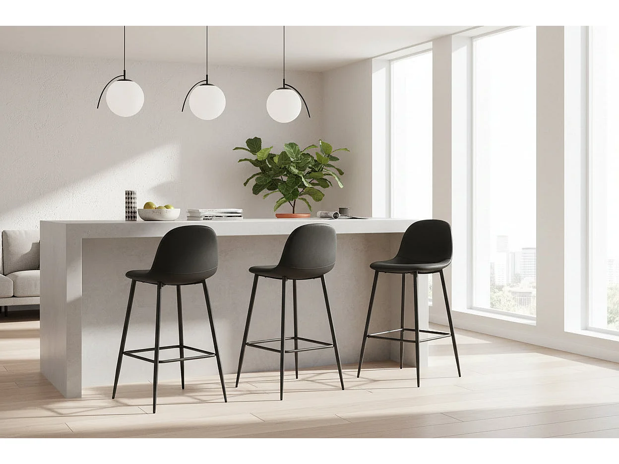 Lot 2 Tabourets de Bar Scandinave Velours Noir Pieds Métal Noir