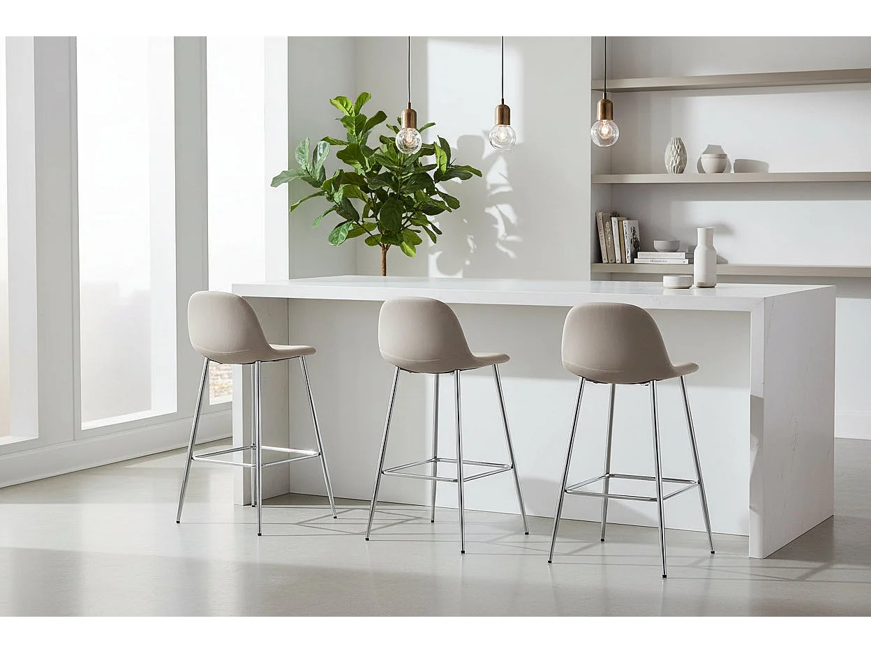 Lot 2 Tabourets de Bar Scandinave Velours Taupe Pieds Chrome