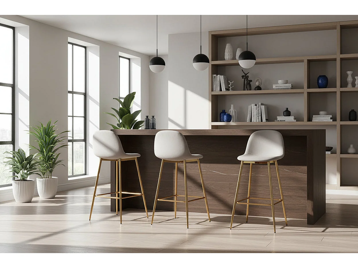 Lot 2 Tabourets de Bar Scandinave Velours Taupe Pieds Gold 47,5x43x100cm