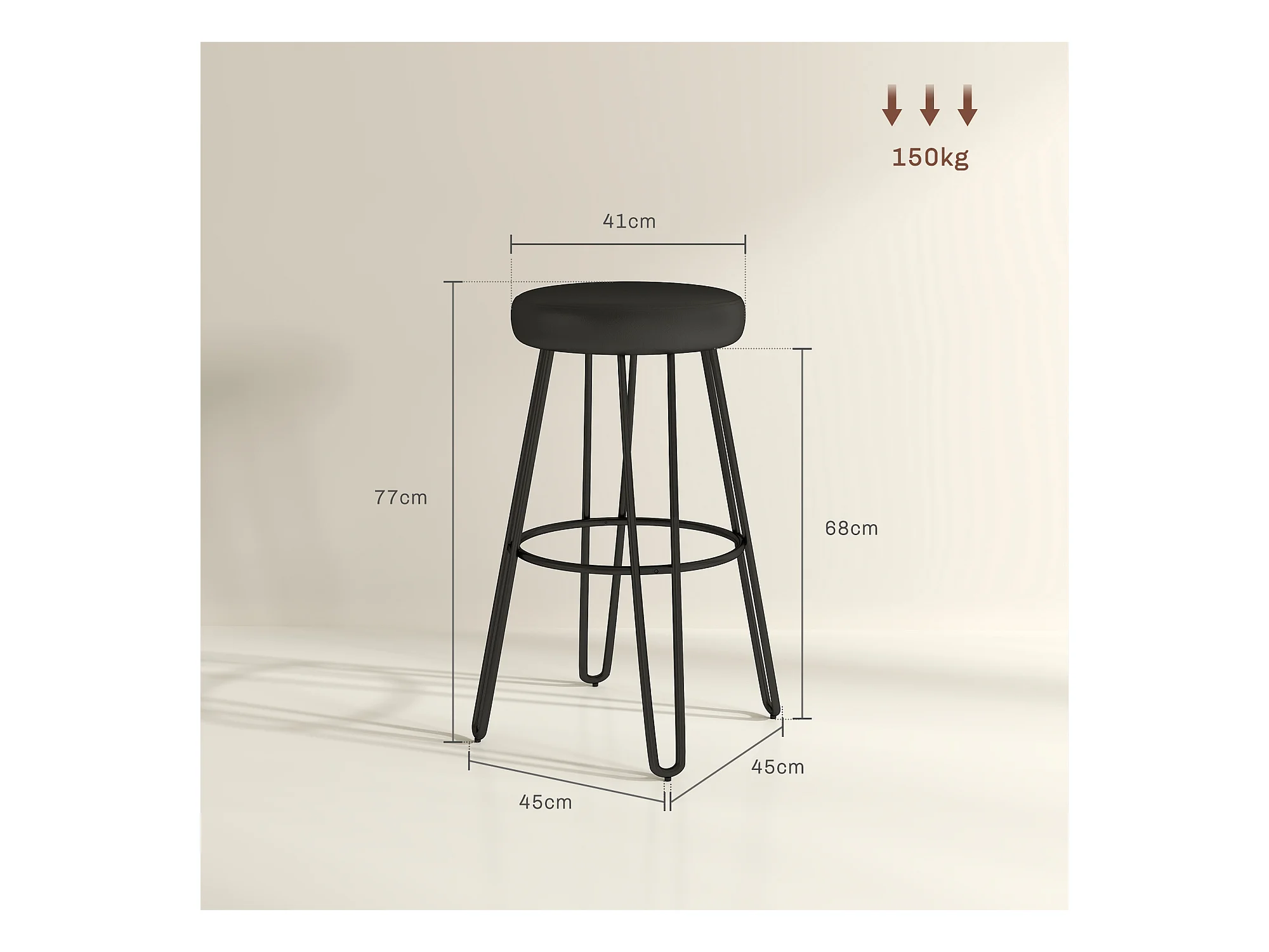 Lot de 2 Tabourets Hauts MF445, Noir, 43x49,5x85,5 cm, Epikasa