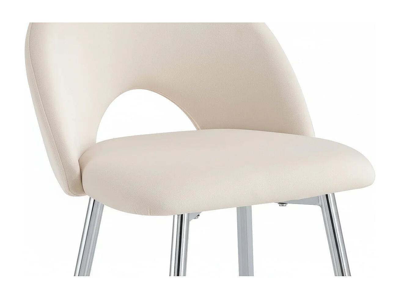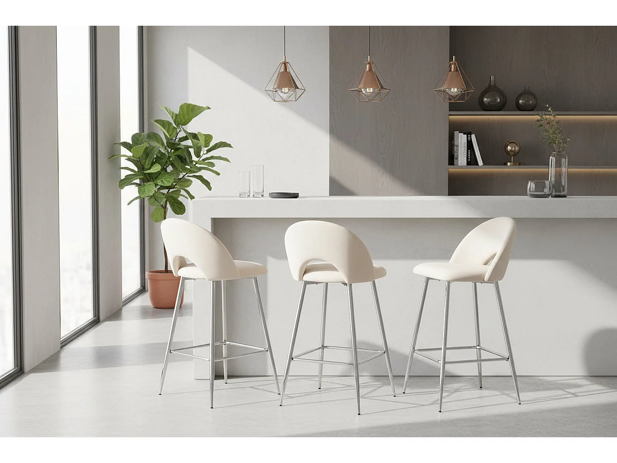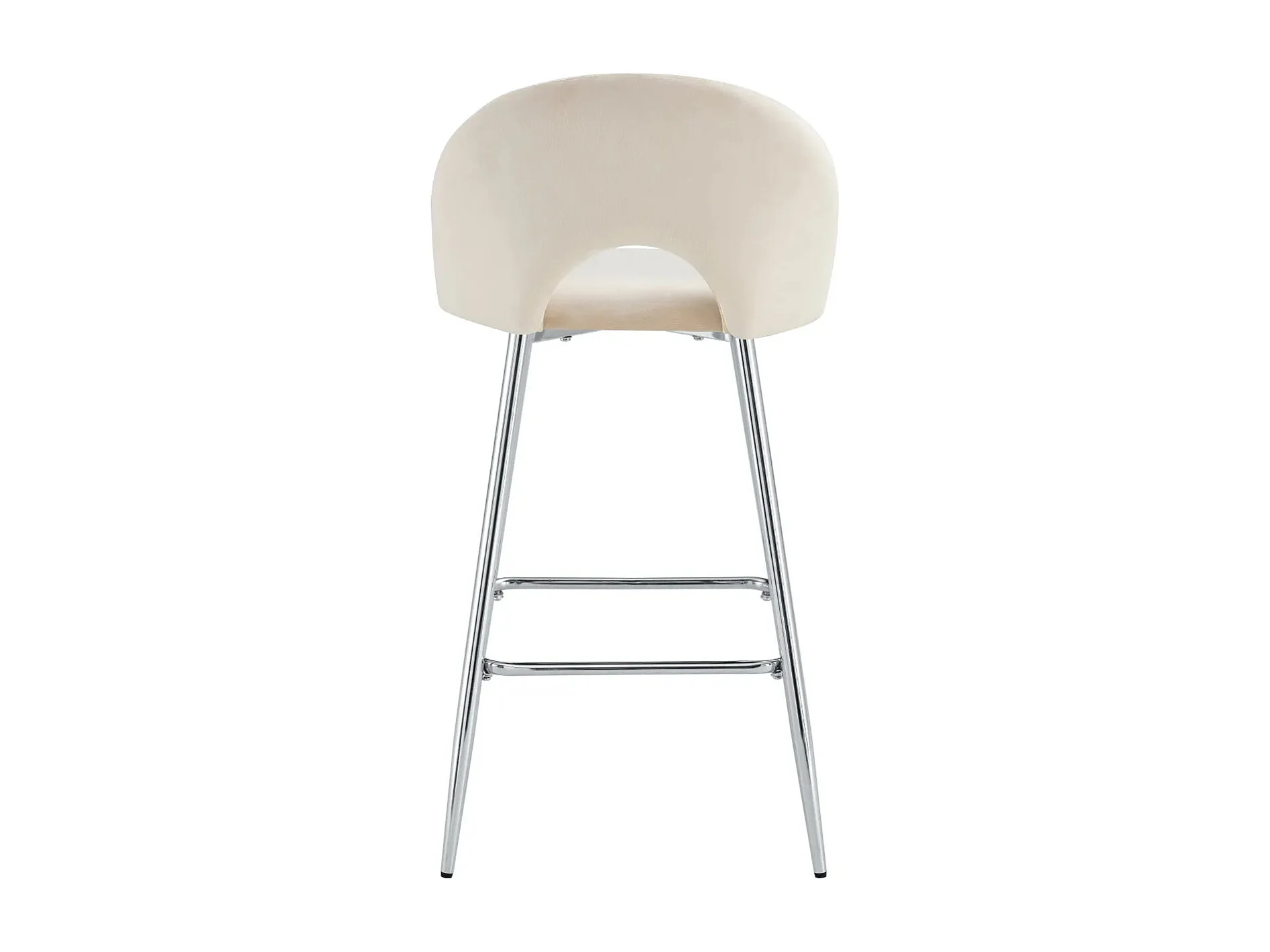 Lot 2 Tabourets de Bar Teddy Velours Beige Pieds Chrome 47x36x98cm