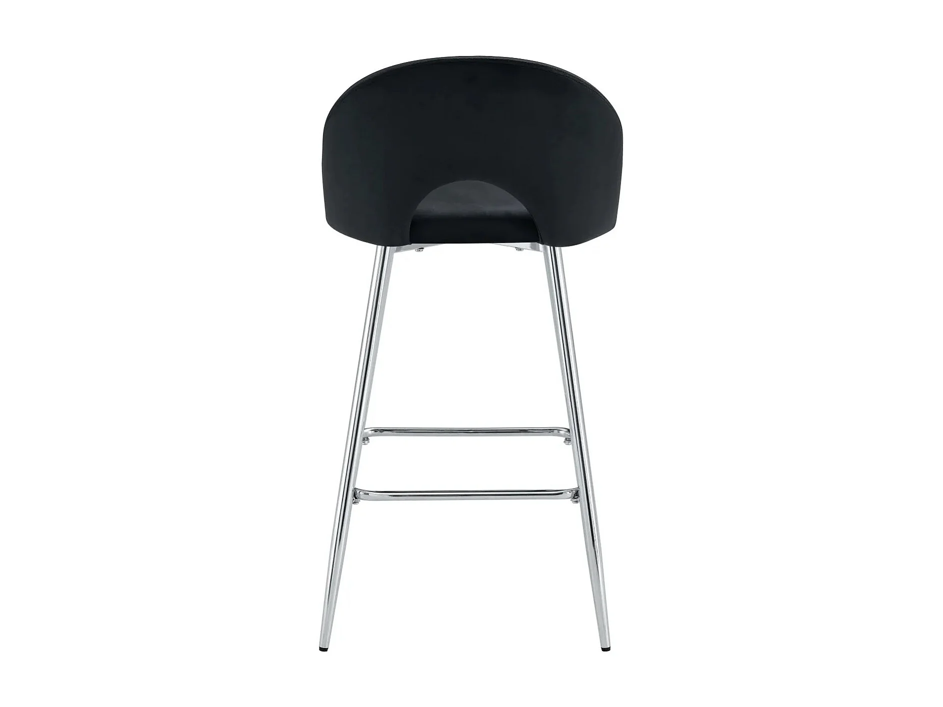 Lot 2 Tabourets de Bar Teddy Velours Noir Pieds Chrome 47x36x98cm