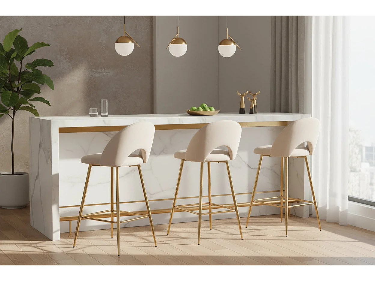 Lot 2 Tabourets de Bar Teddy Velours Beige Pieds Gold 47x36x98cm