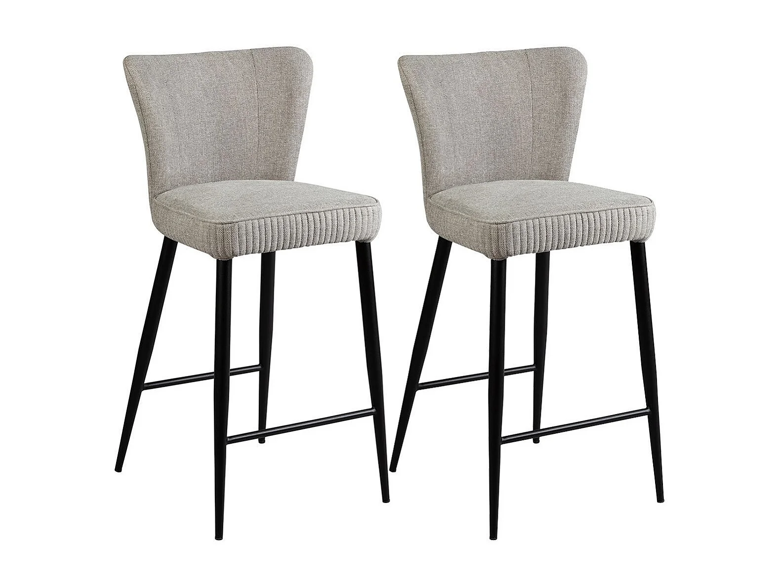 Lot de 2 Tabourets de Bar Tissu Gris Clair Chiné Pieds Métal Noir Mat - MAURINE