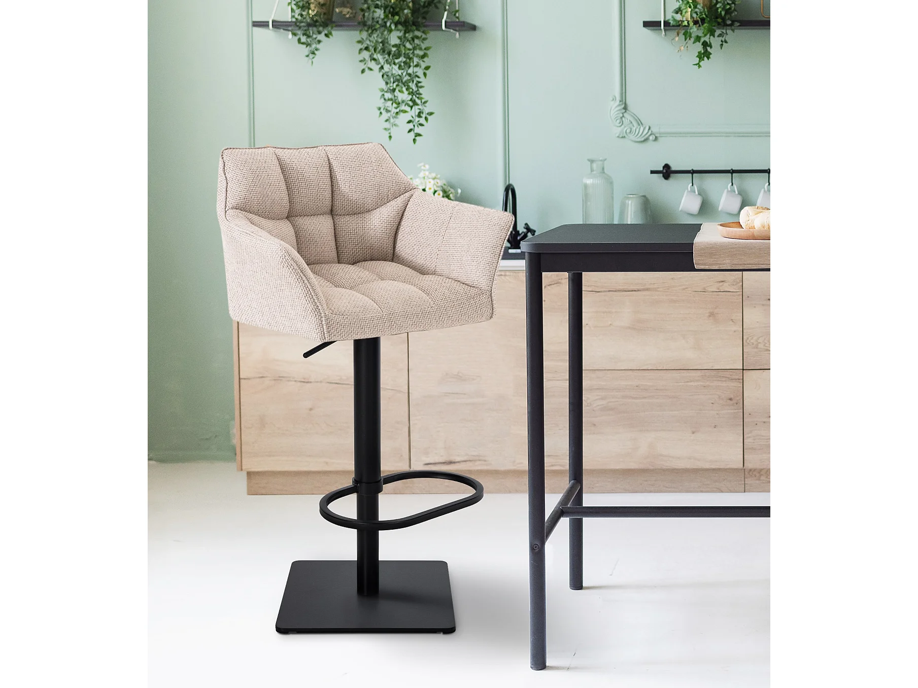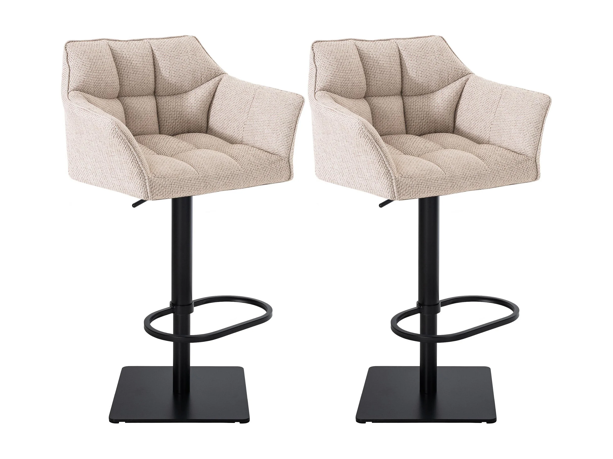 Lot de 2 Tabouret de bar - Tissu & Noir - Ivoire - Damaso