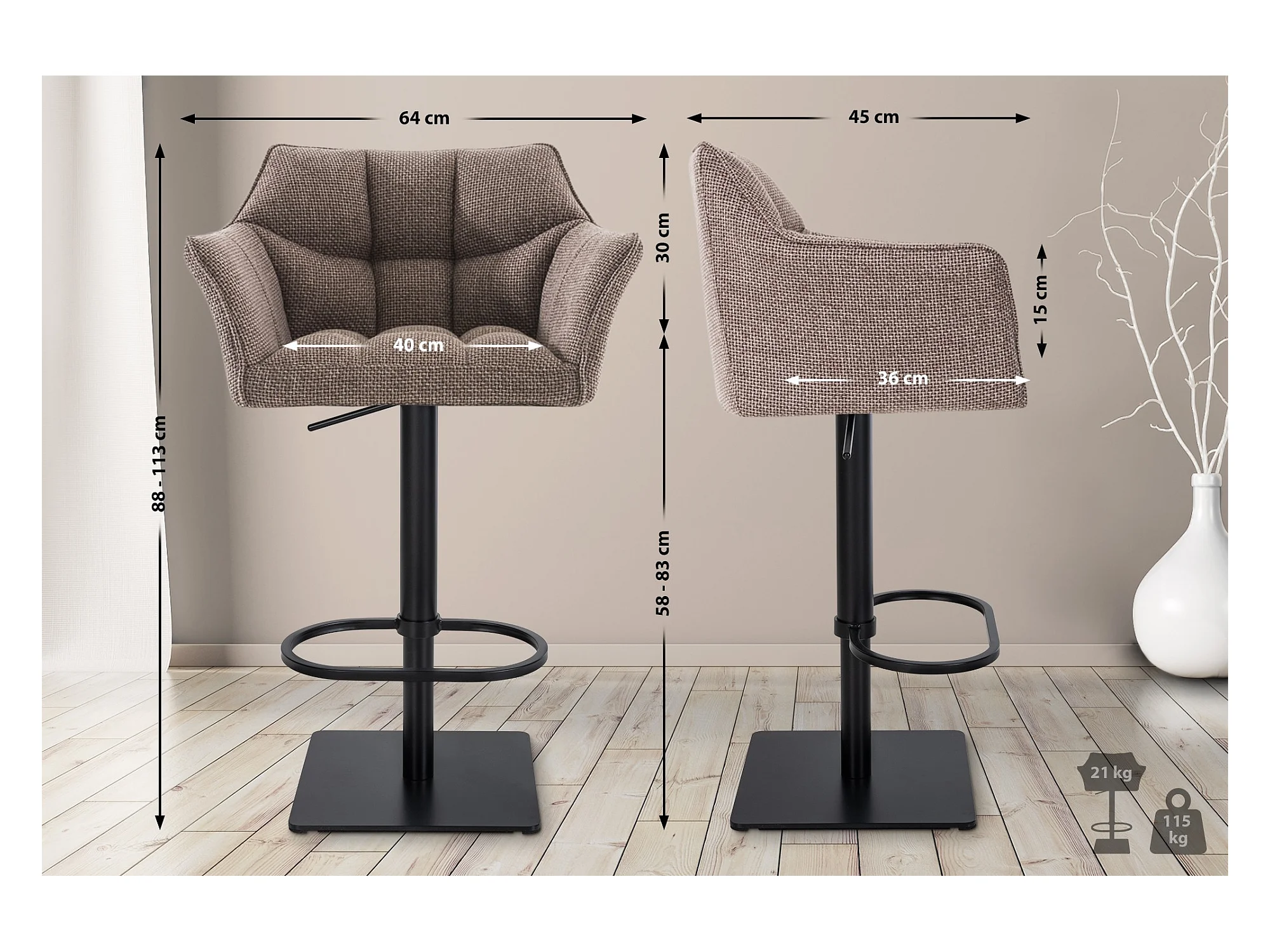 Lot de 2 Tabouret de bar - Tissu & Noir - Marron terre - Damaso