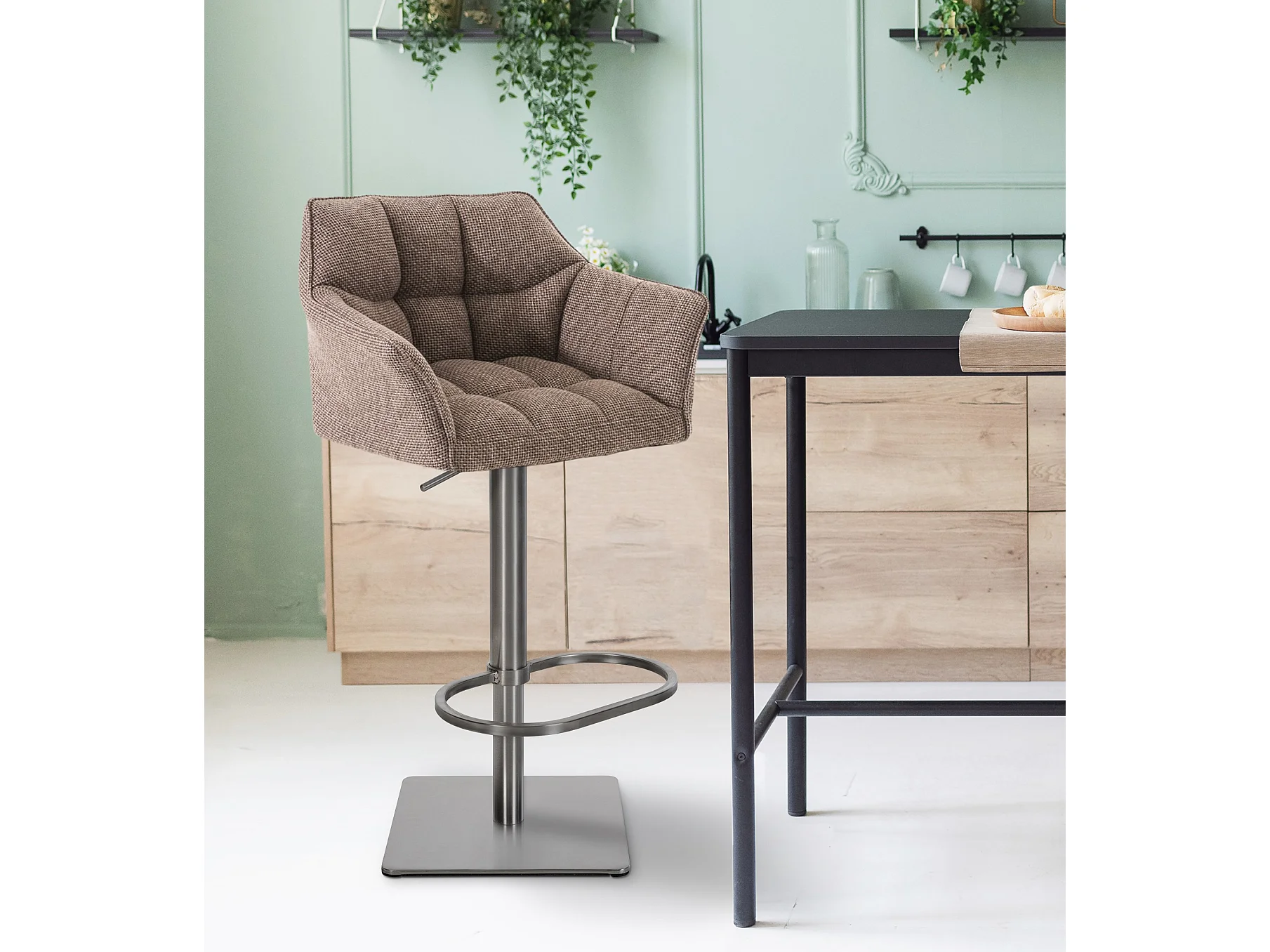 Lot de 2 Tabouret de bar - Tissu & Acier inoxydable - Marron terre - Damaso