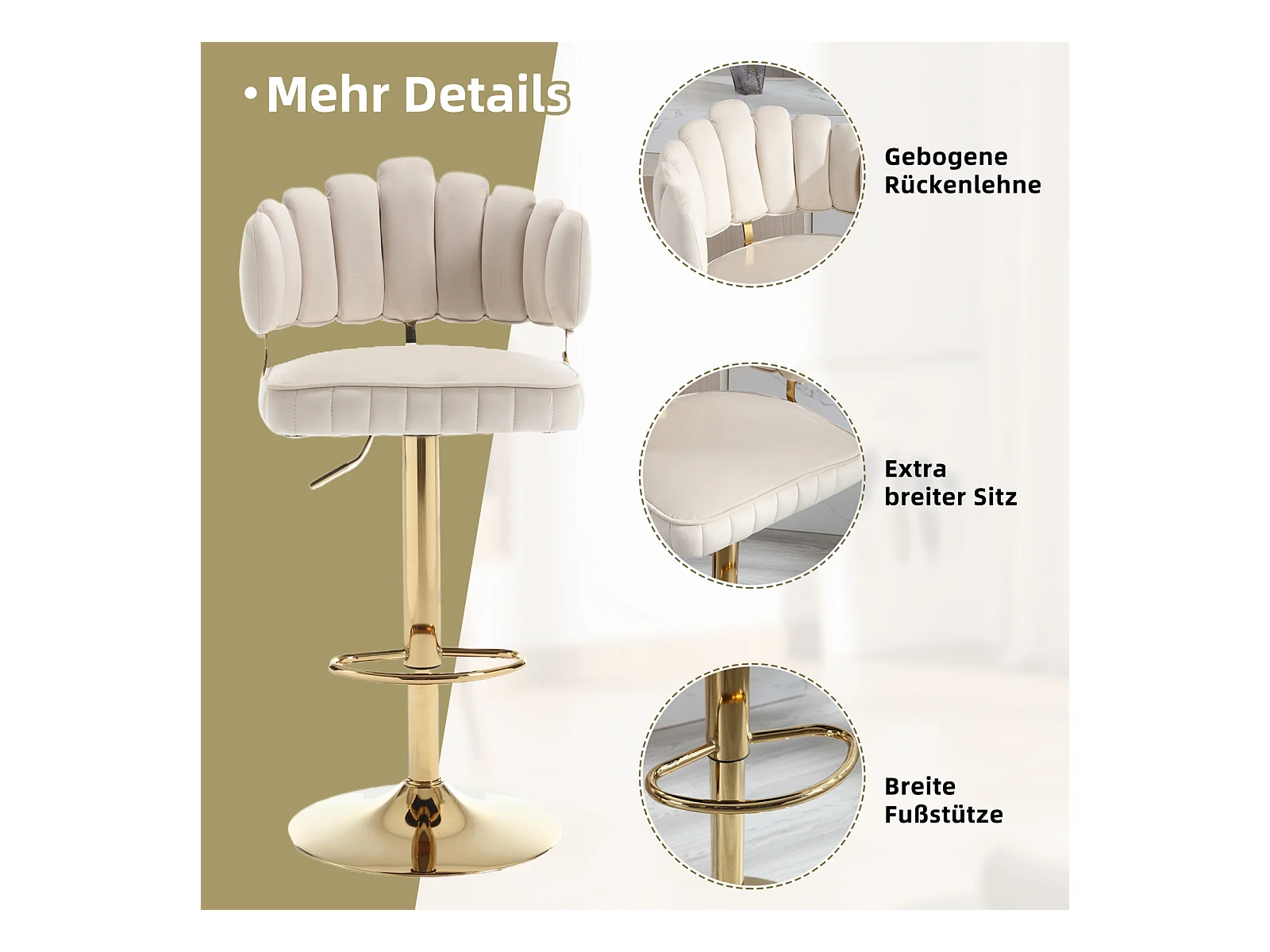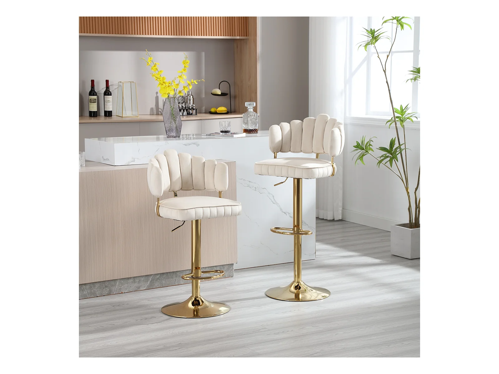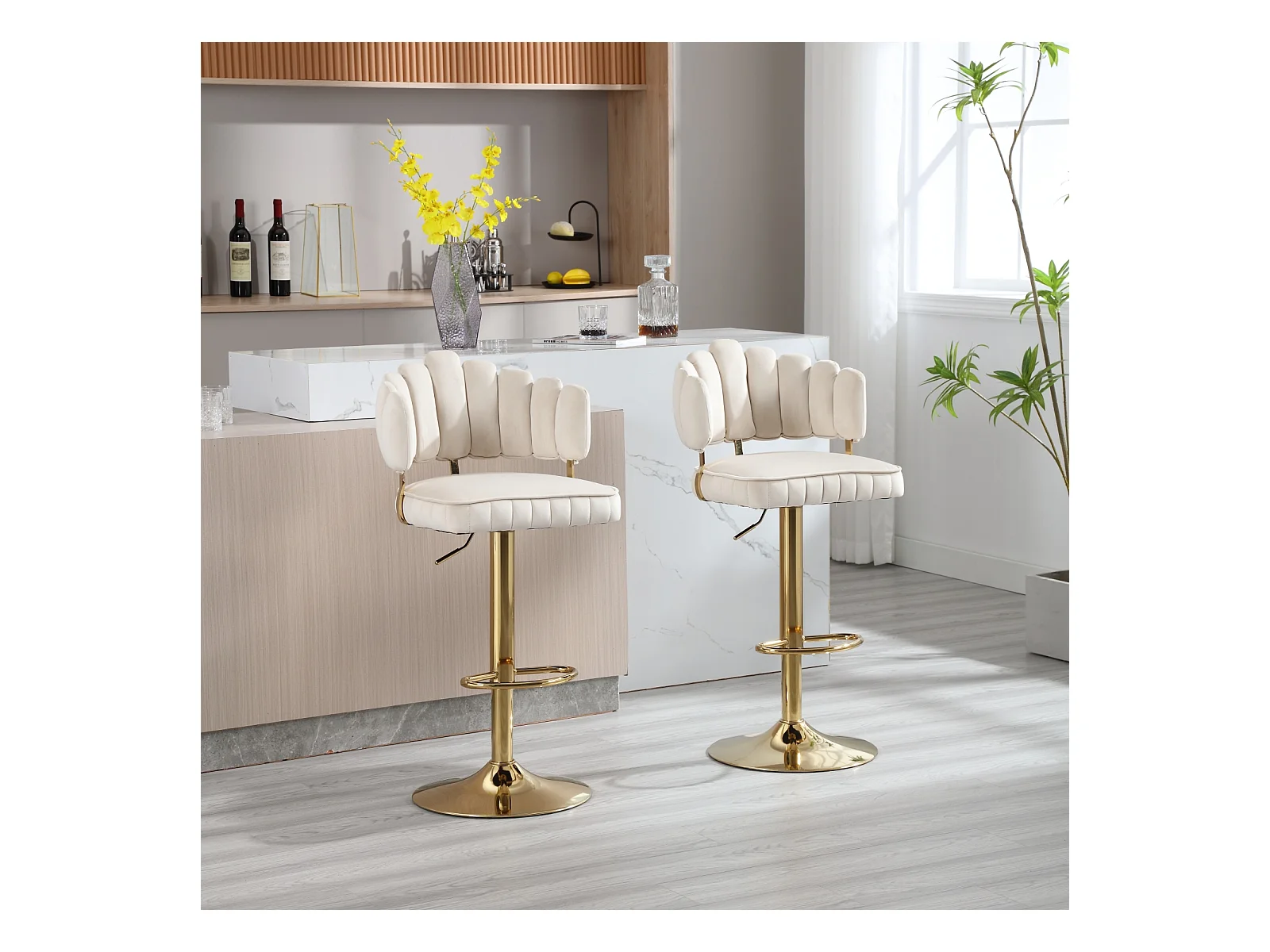 Lot de 2 tabourets de bar pivotants, chaises réglables en hauteur avec repose-pieds pour cuisine, salle à manger, 48x44.5x92-114cm, beige