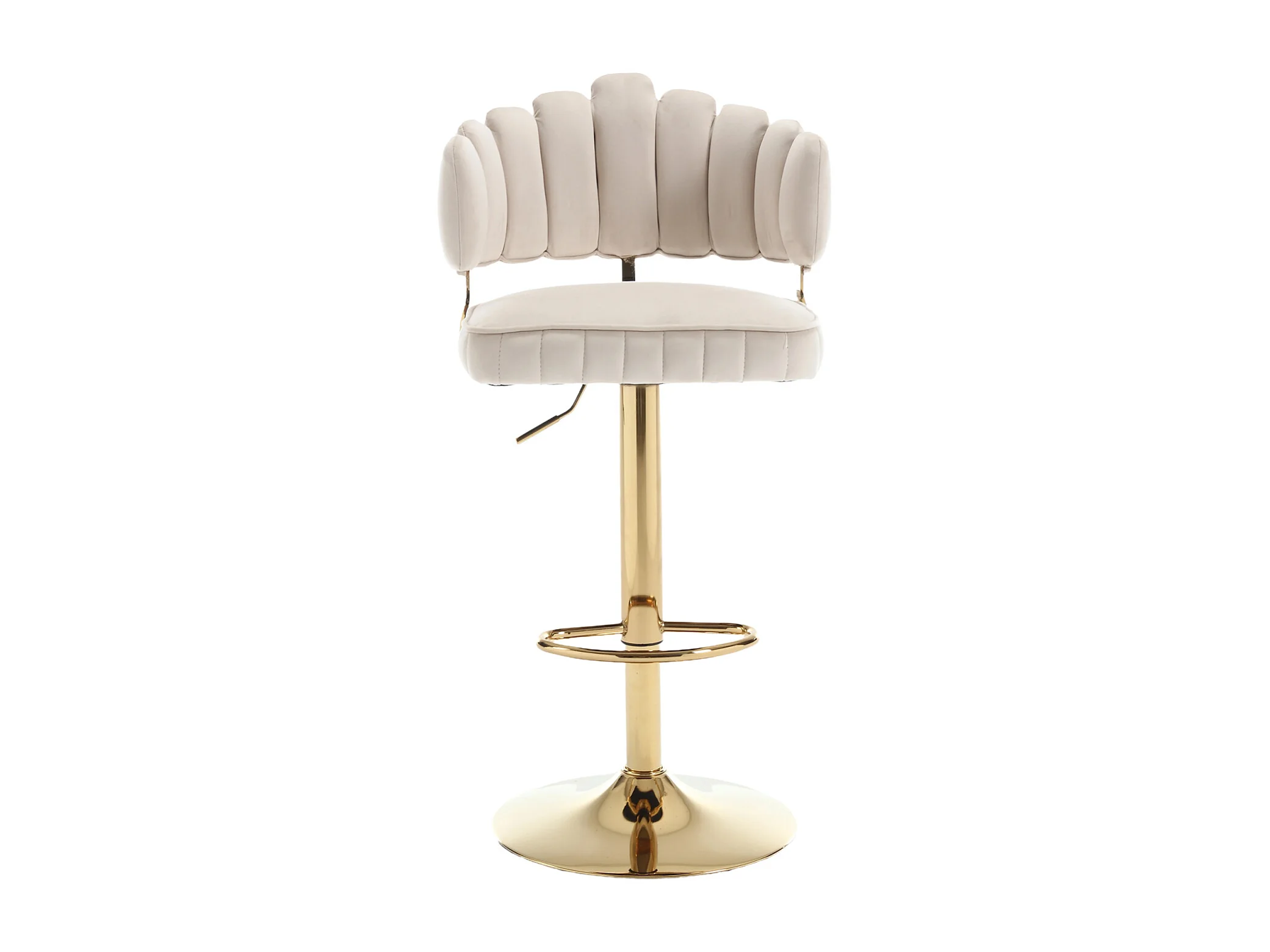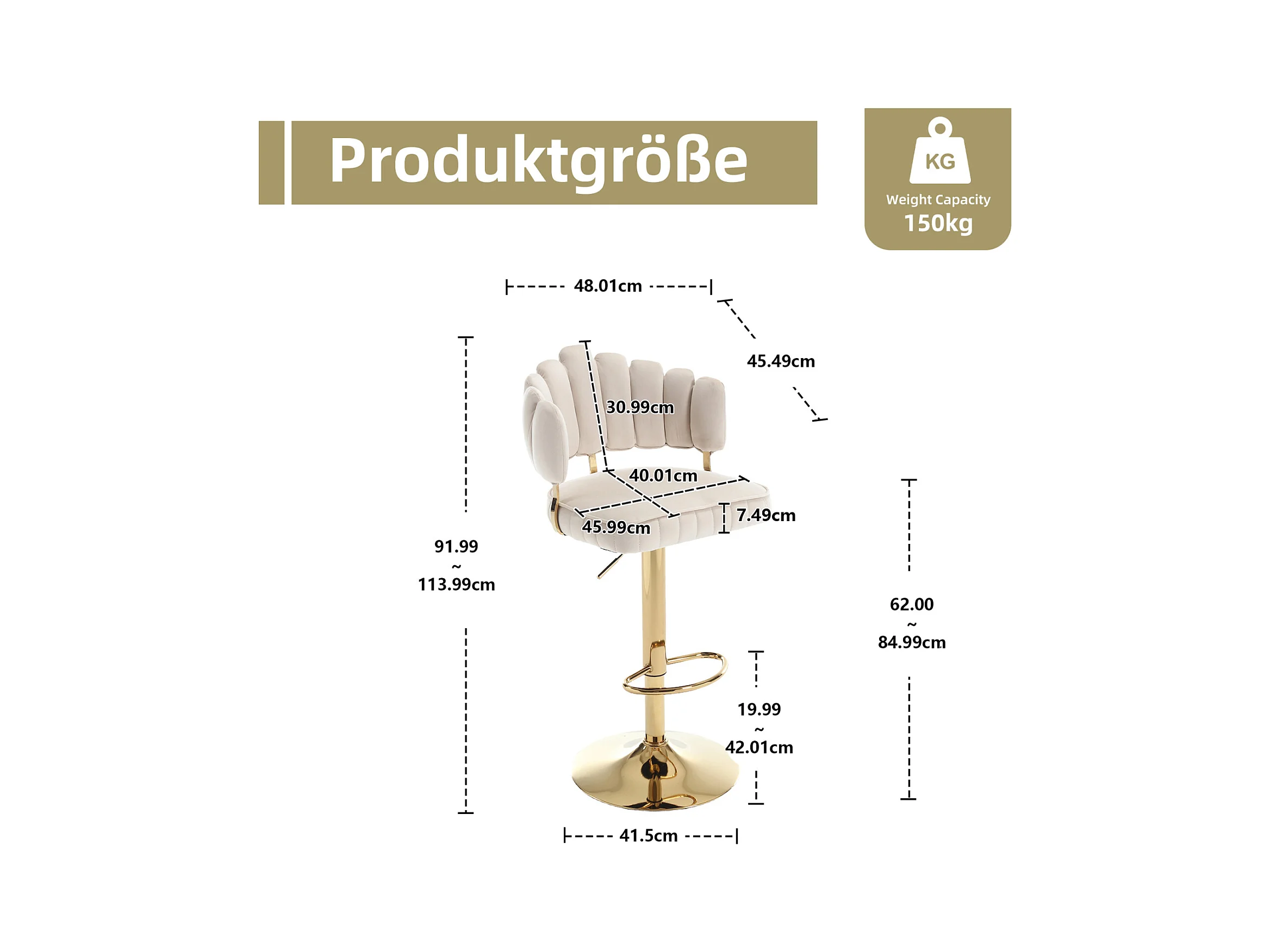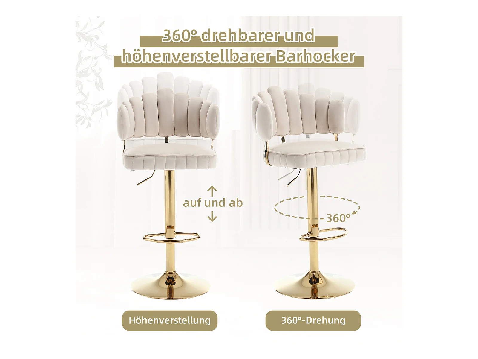 Lot de 2 tabourets de bar pivotants, chaises réglables en hauteur avec repose-pieds pour cuisine, salle à manger, 48x44.5x92-114cm, beige
