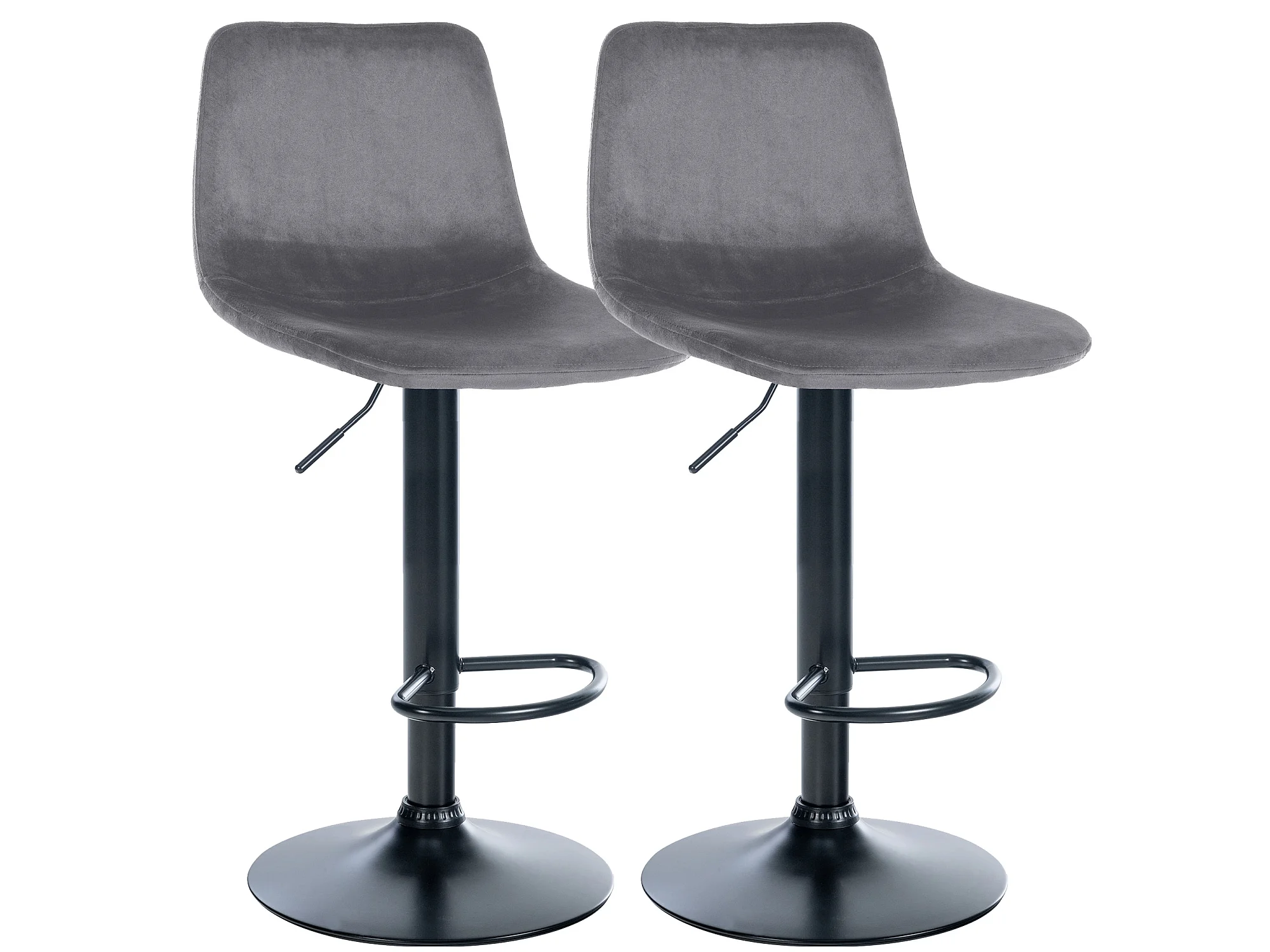 Lot de 2 Tabourets de bar - Velours & Métal - Gris foncé - Divo