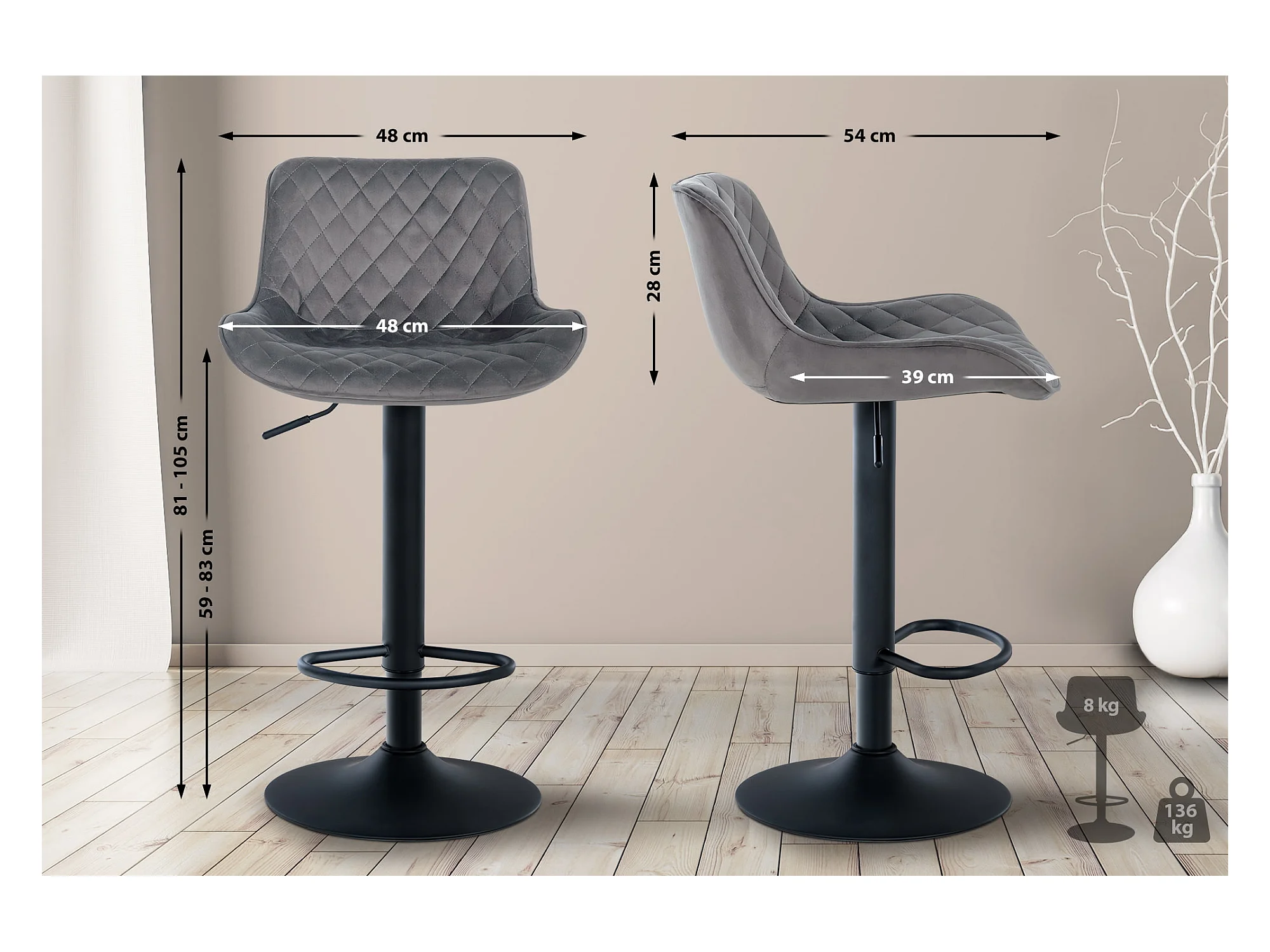 Lot de 2 Tabourets de bar - Velours & Métal - Gris foncé - Lentini