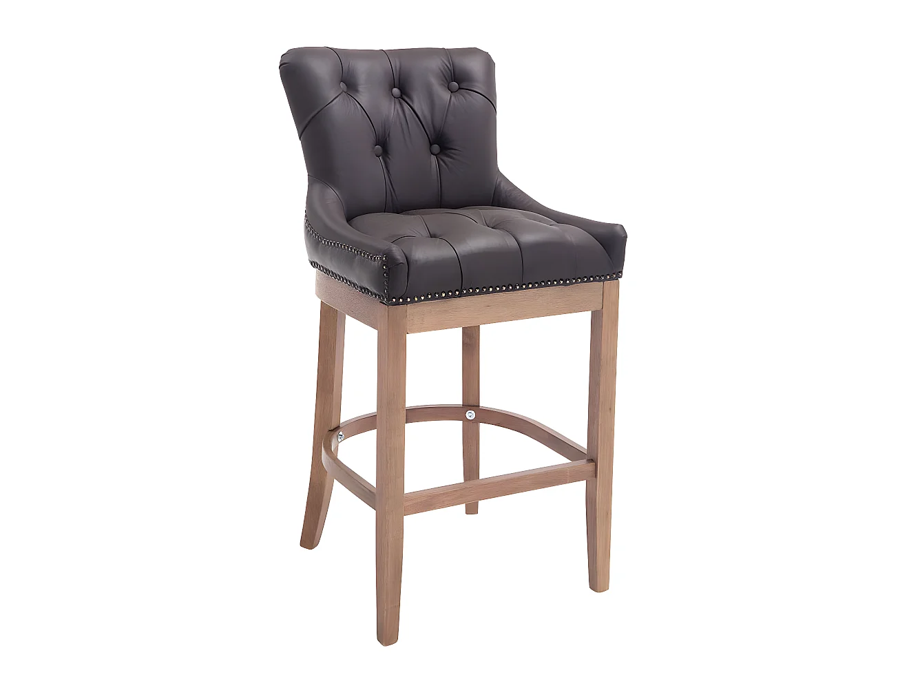 Lot de 2 Tabourets de bar - Véritable cuir & Bois - Marron - Lakewood