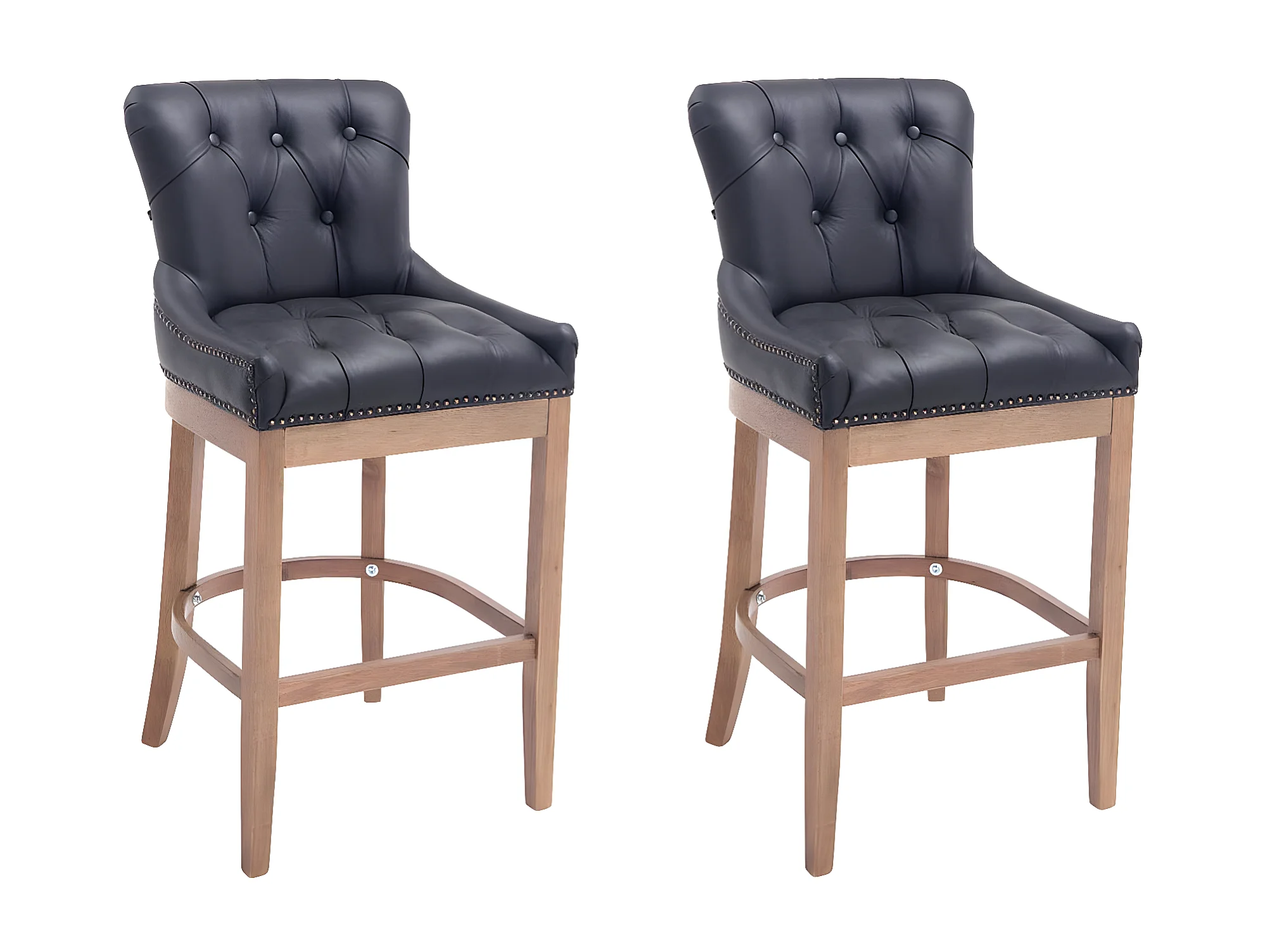 Lot de 2 Tabourets de bar - Véritable cuir & Bois - Noir - Lakewood