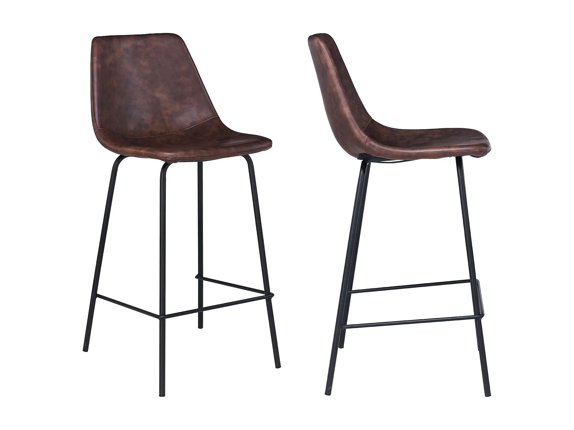 Lot de 2 tabourets de bar en simili marron EDMOND - HAPPY GARDEN