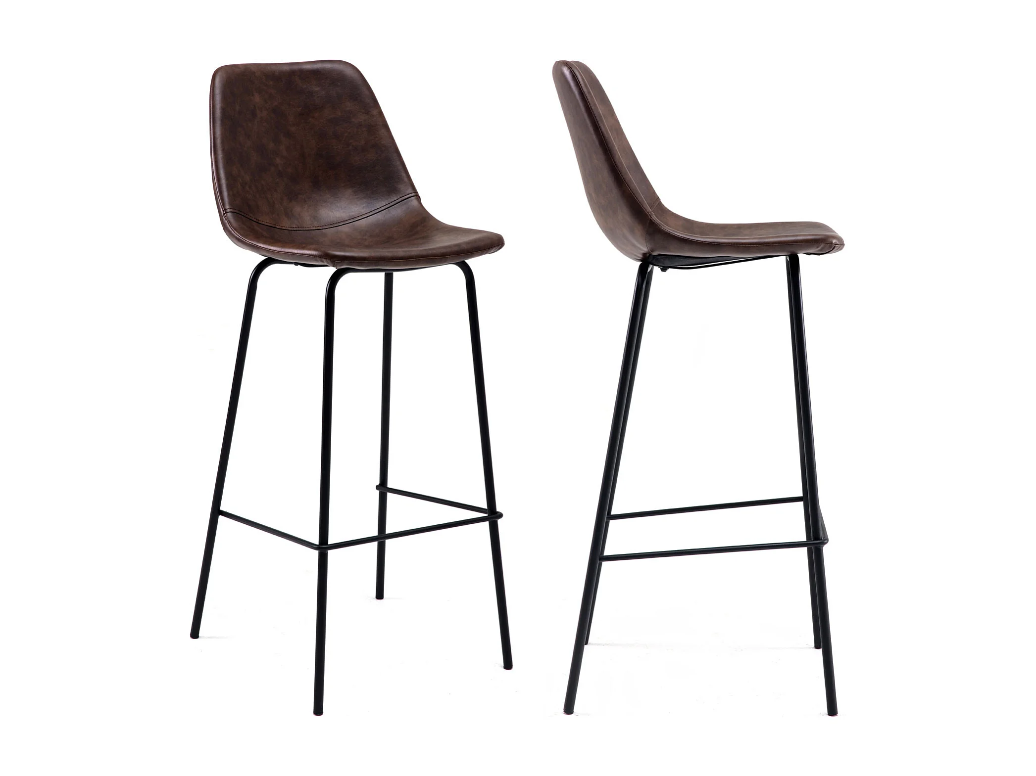 Lot de 2 tabourets de bar en simili marron EDMOND - HAPPY GARDEN