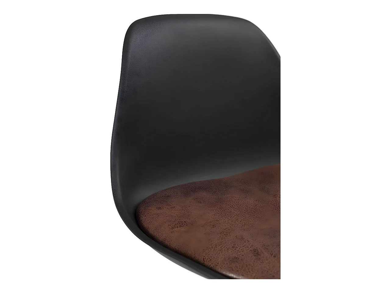 Lot 2 chaises de bar scandinaves 70cm large siège coussin simili cuir pieds bois TIKA (noir)