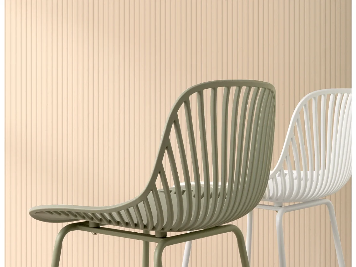 Lot de 2 tabourets en polypropylène blanc avec pieds en métal