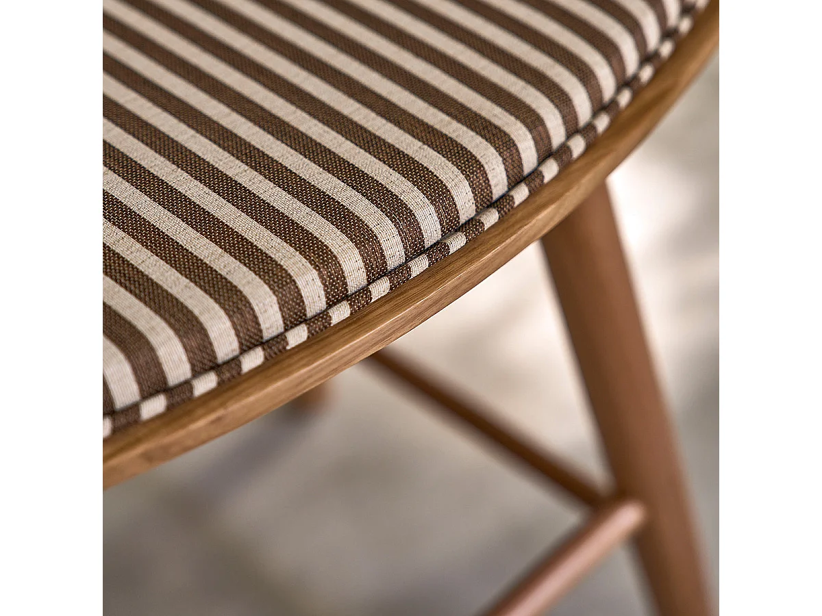 Lot de 2 tabourets en teck massif et assise à rayures 45 cm