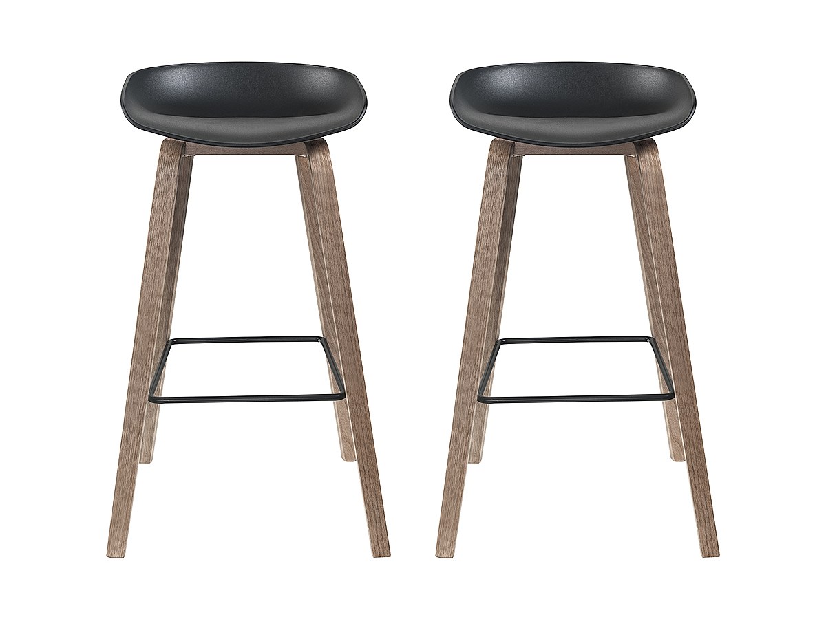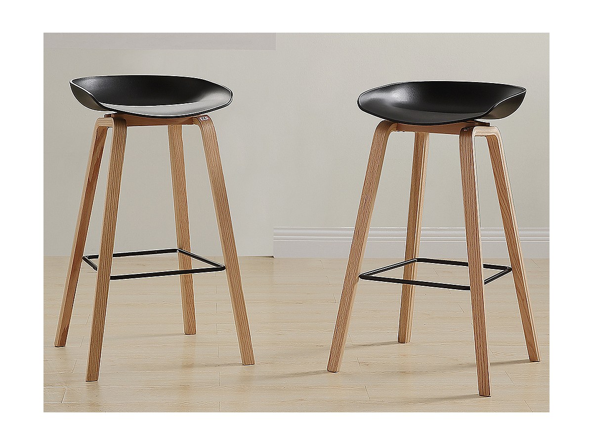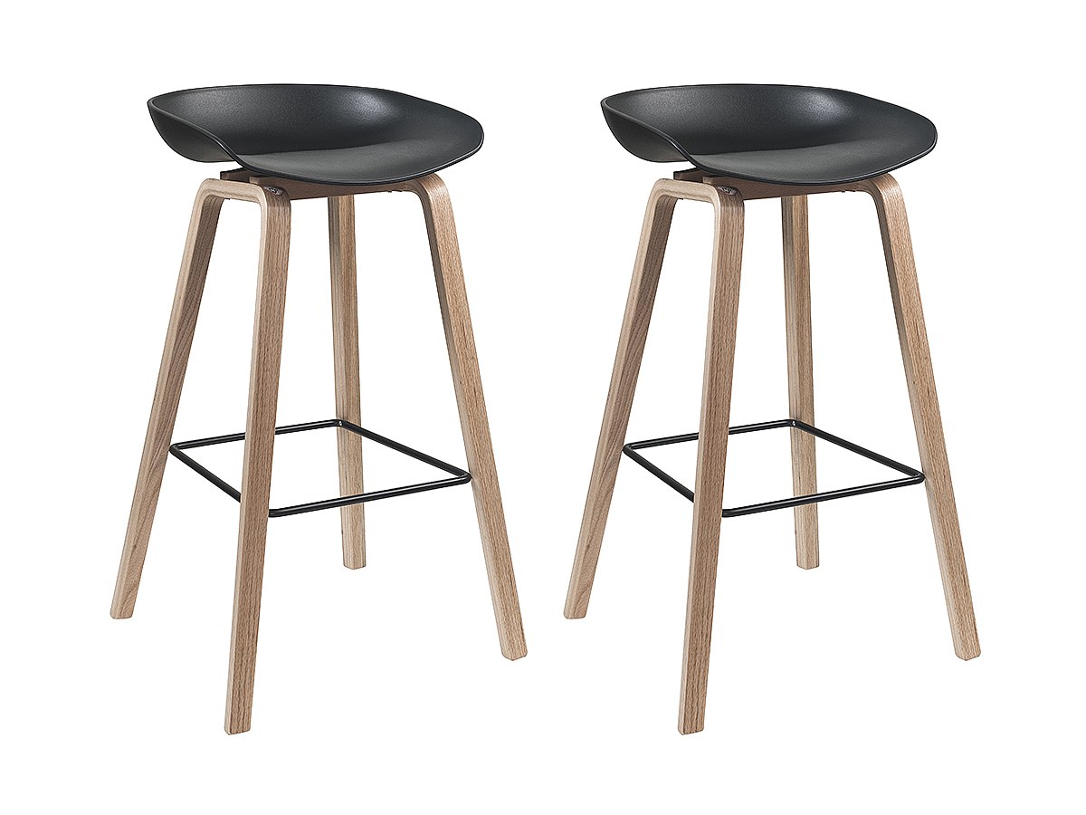 Lot de 2 tabourets MAGDA - Polypropylène et Hêtre - Noir & Pieds Naturel