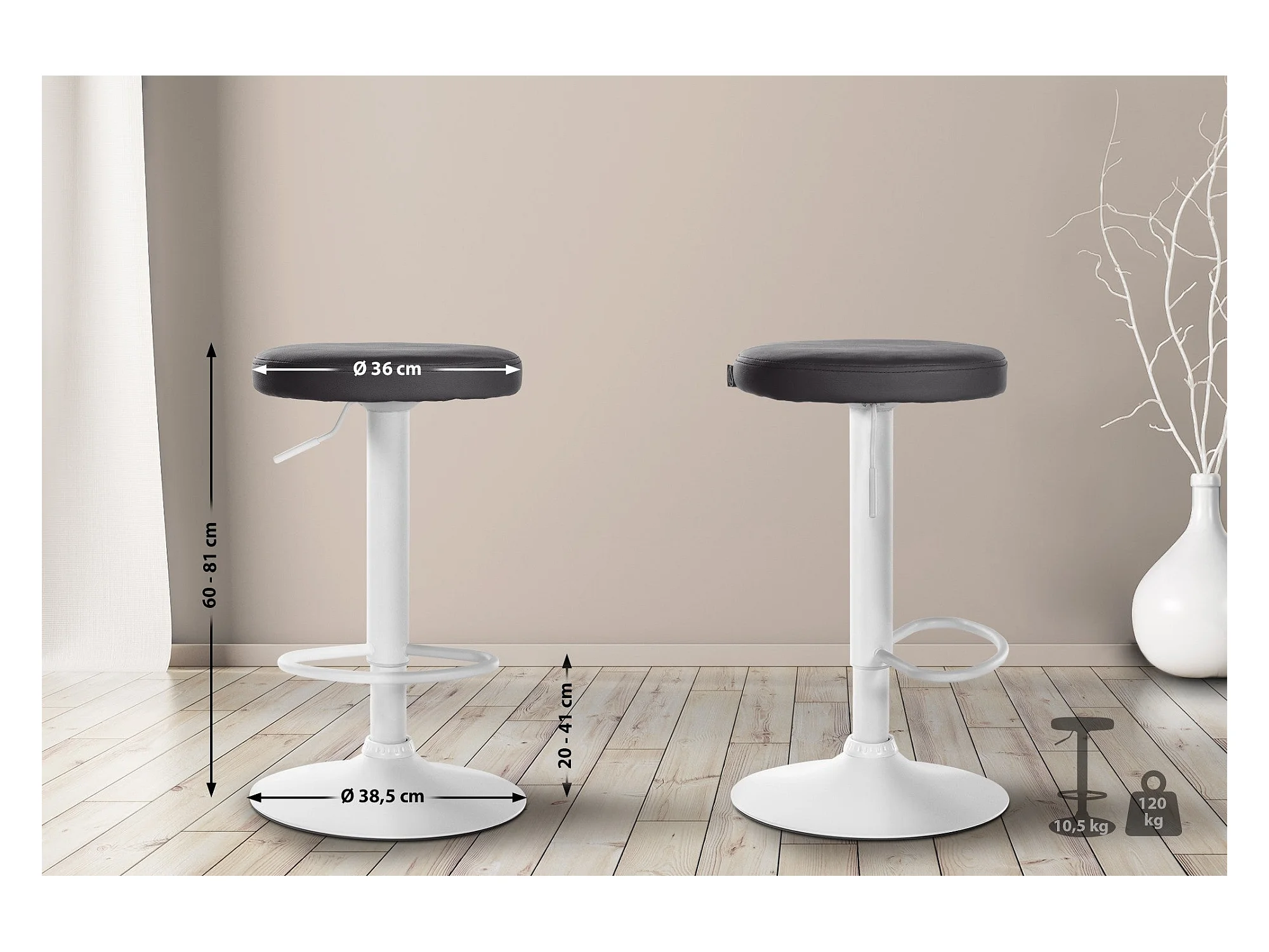 Lot de 2 tabourets métal blanche 38.5 x 38.5 x 81 cm TDB10682