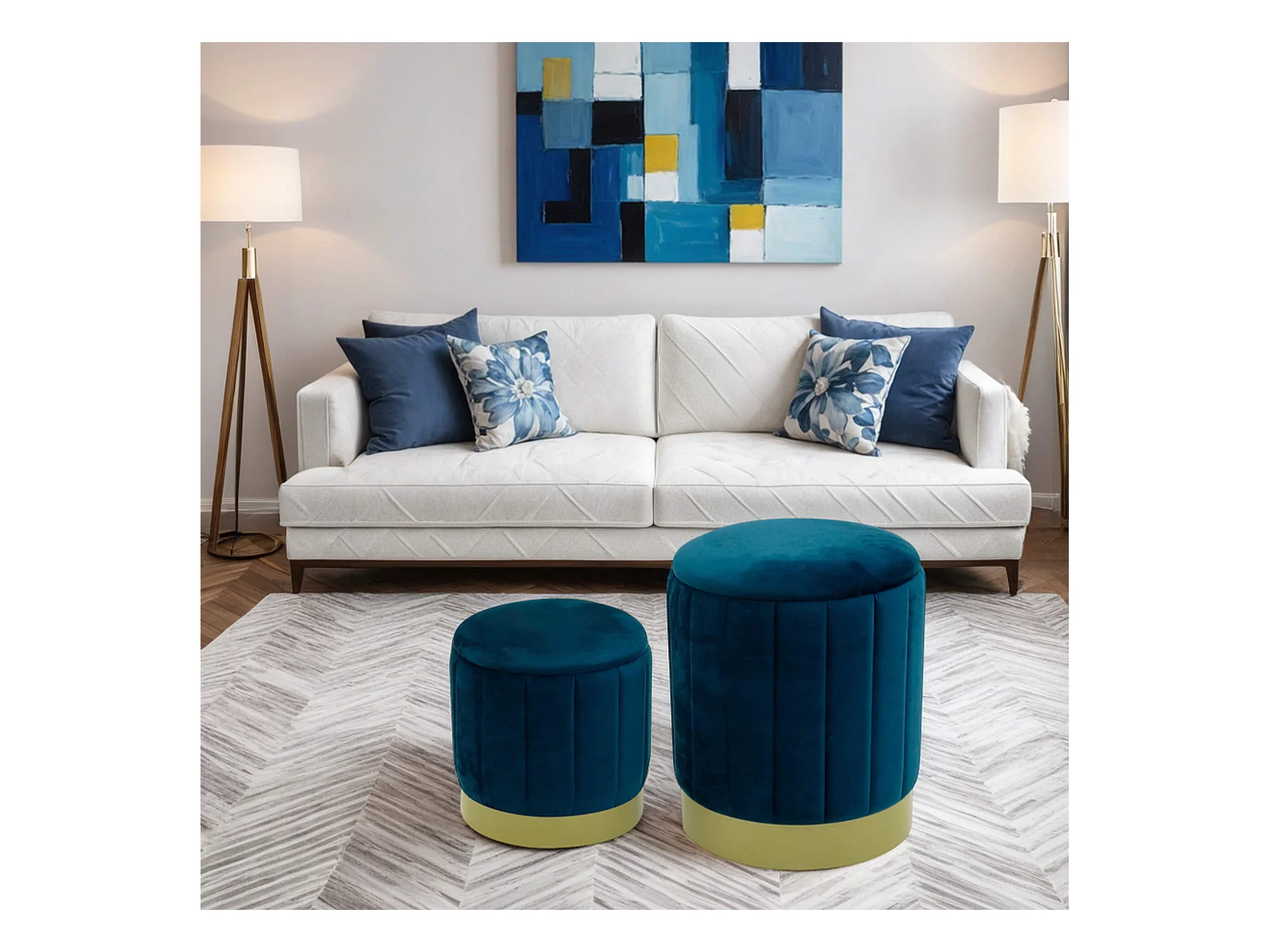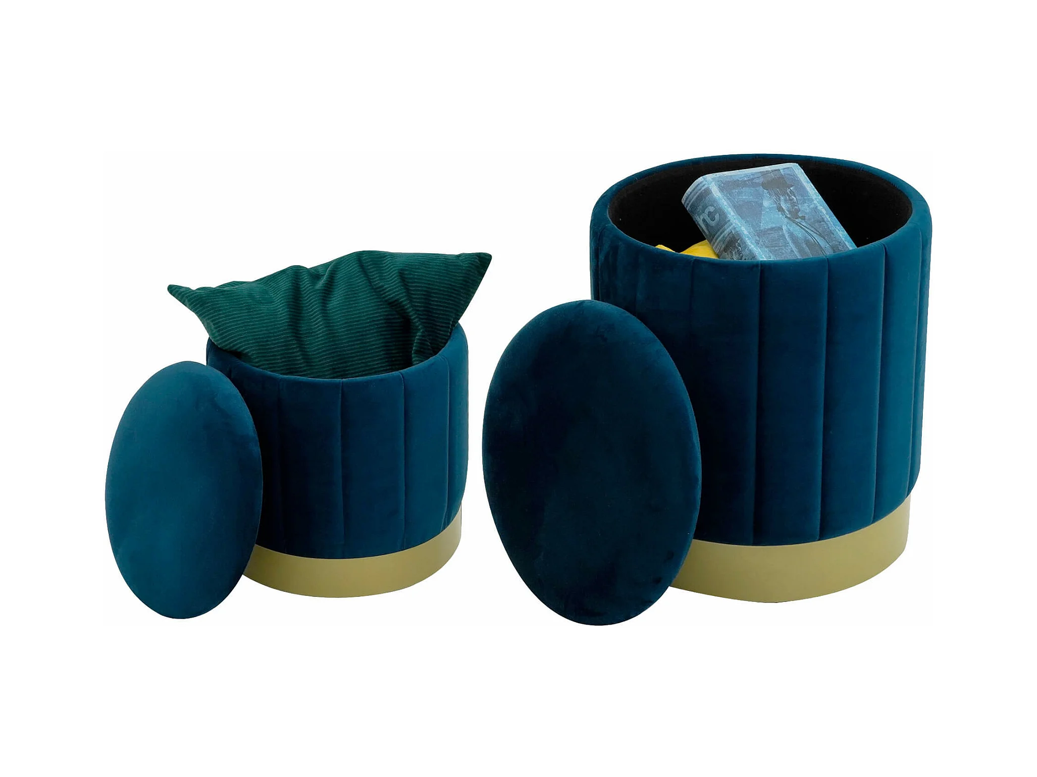Lot de 2 Tabourets Pouf avec Rangement Bleu pour Salon
