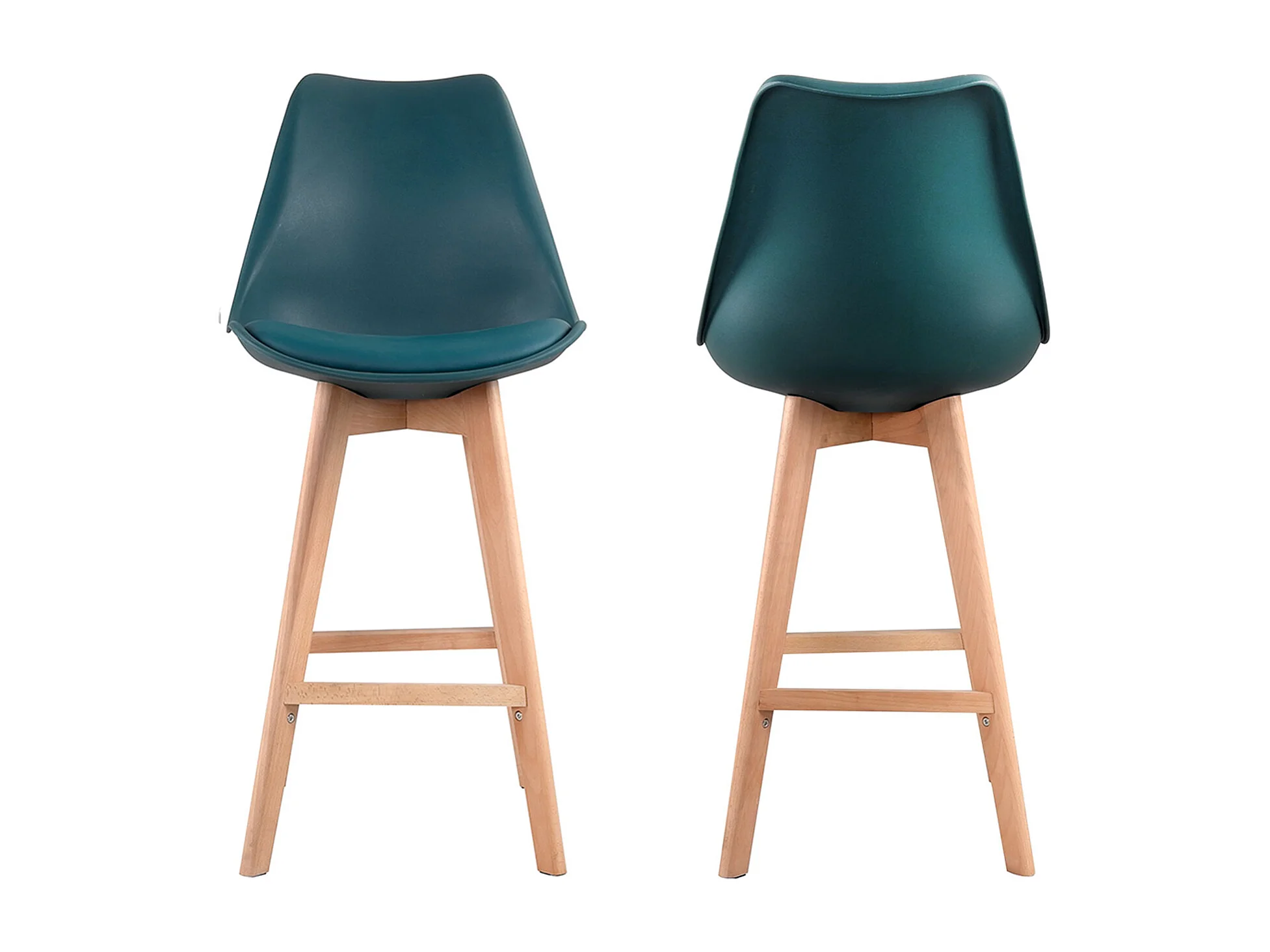 Tabouret nordique coussin simili cuir bleu canard et pieds hêtre clair Tula 67cm