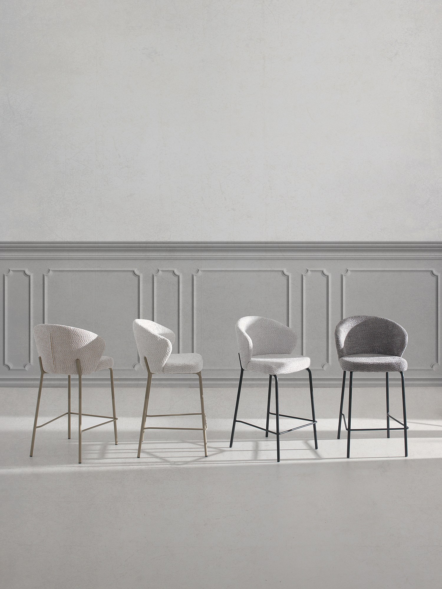 Lot de 2 tabourets tapissés en chenille crème