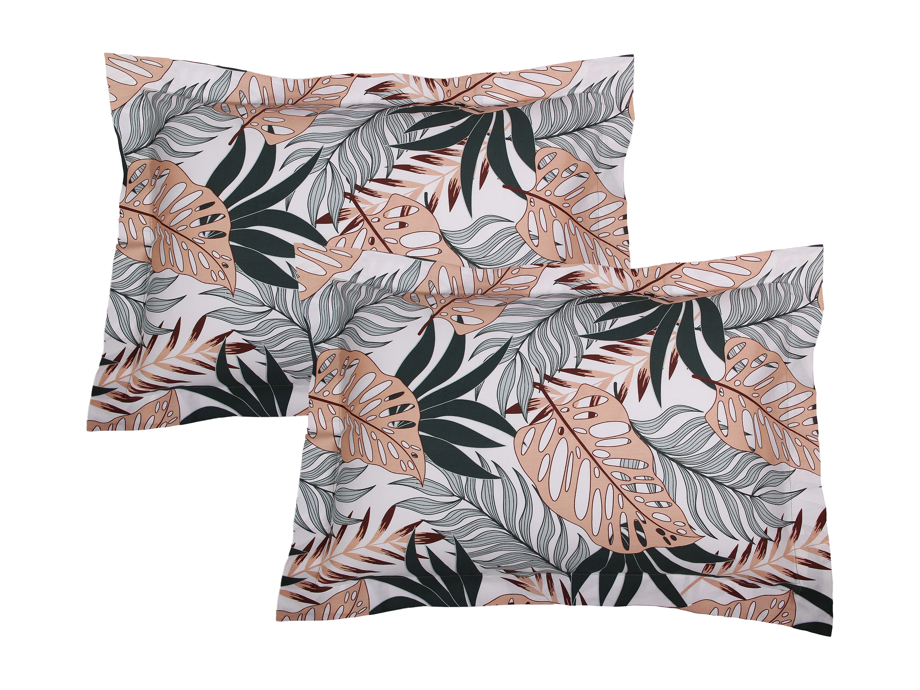Lot de 2 taies d'oreiller 50x70 cm satin de coton imprimé Tropical