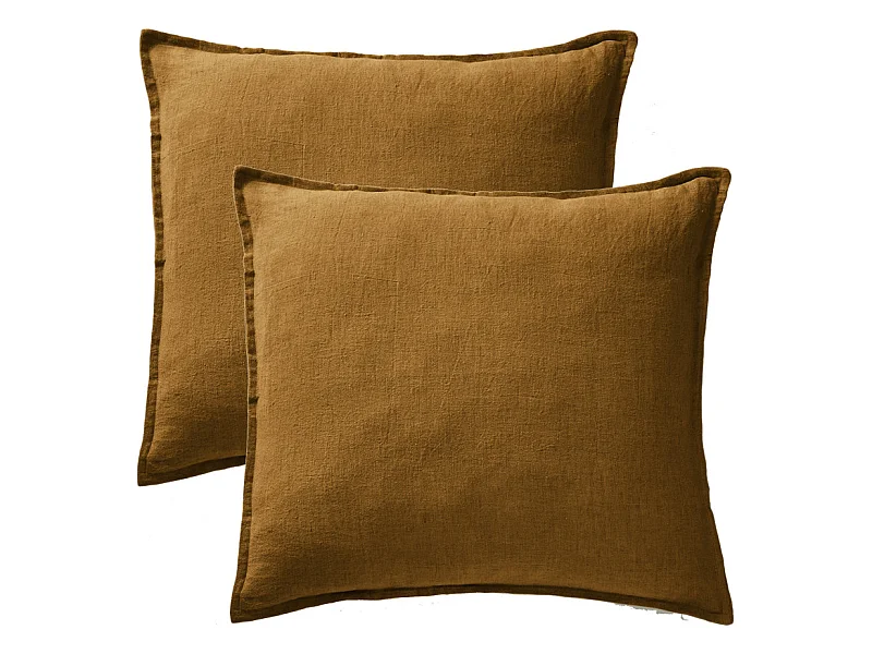 Lot de 2 taies d'oreillers 50 x 70 cm en lin lavé sable - LUISA