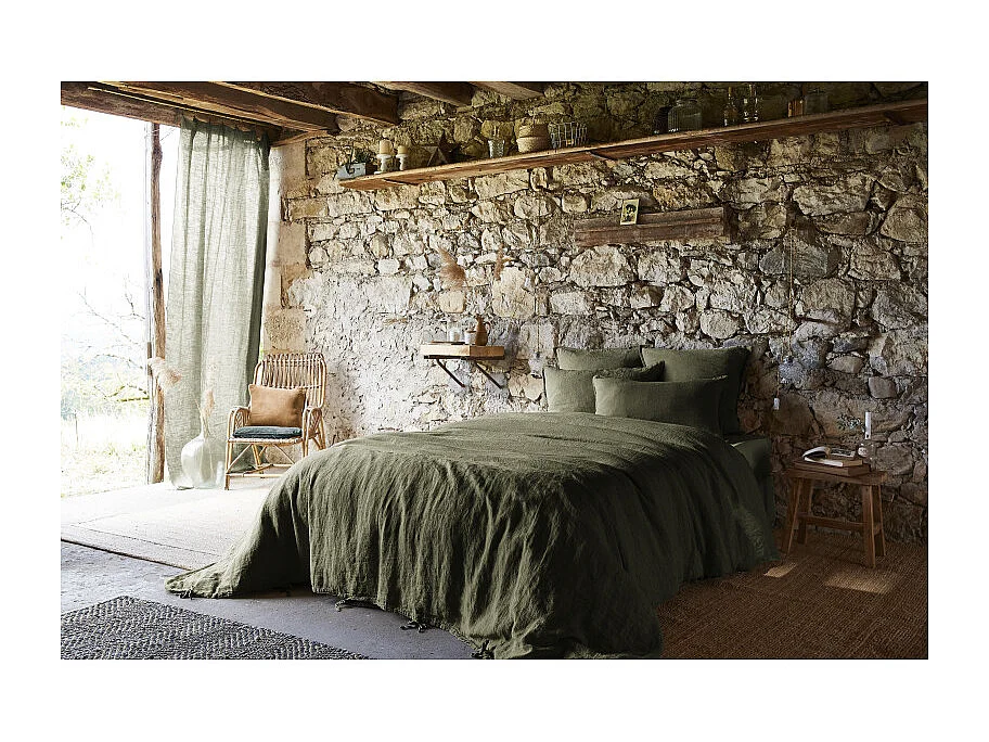 MARGAUX - Taie d'Oreiller 50x70cm Lin Lavé Coloris Thym