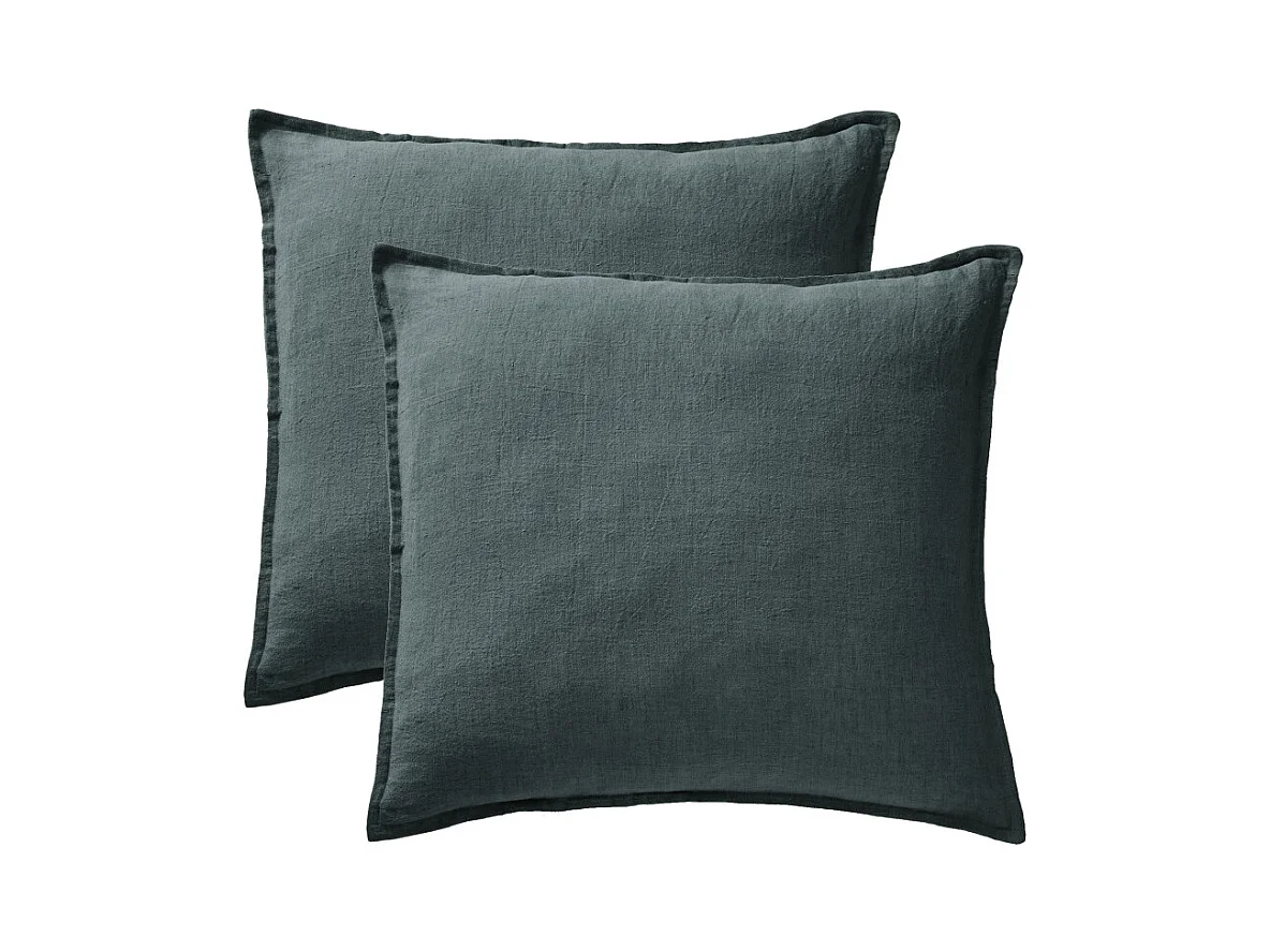 Lot de 2 taies d'oreillers 60 x 60 cm en lin lavé bleu - LUISA