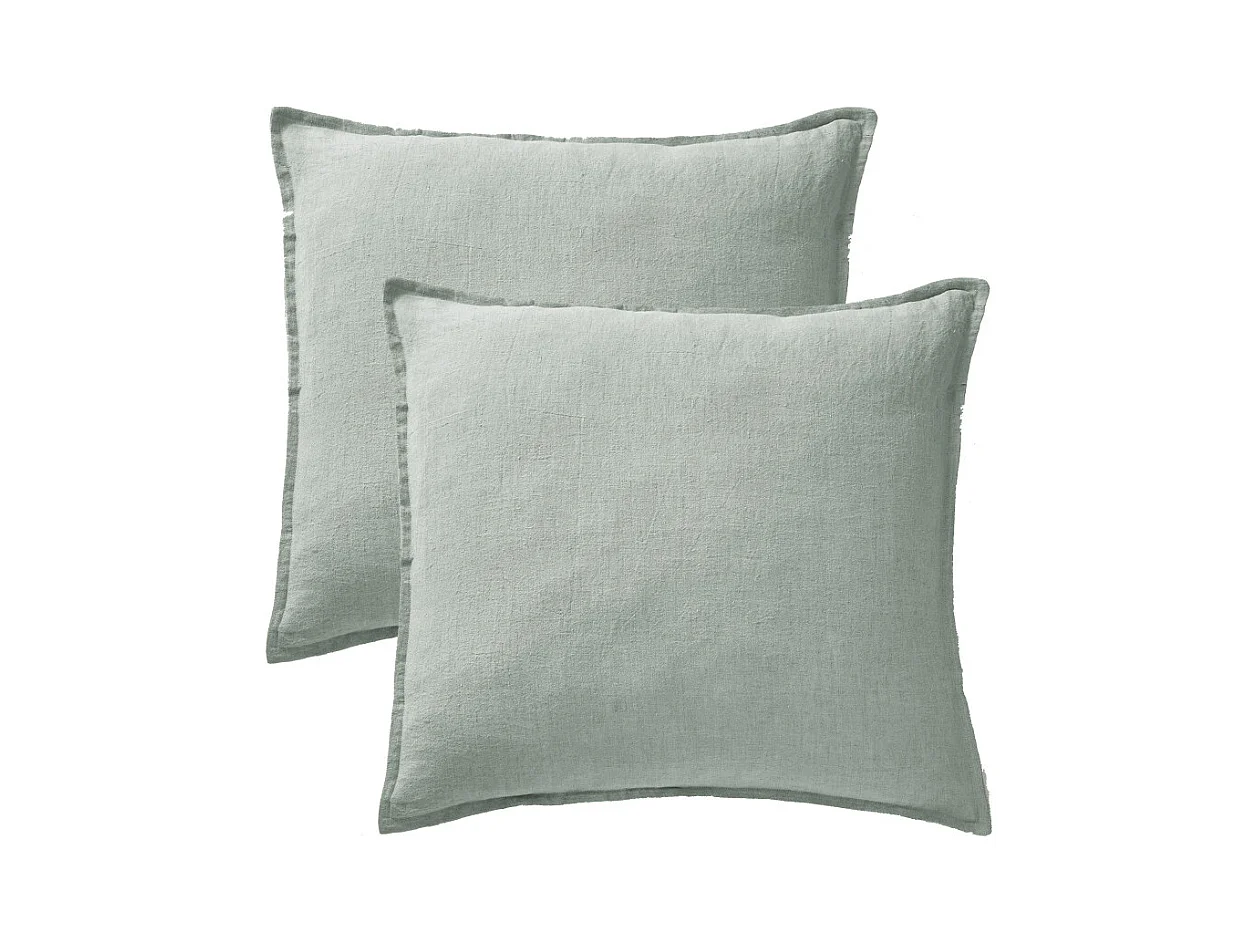 Lot de 2 taies d'oreillers 60 x 60 cm en lin lavé vert - LUISA