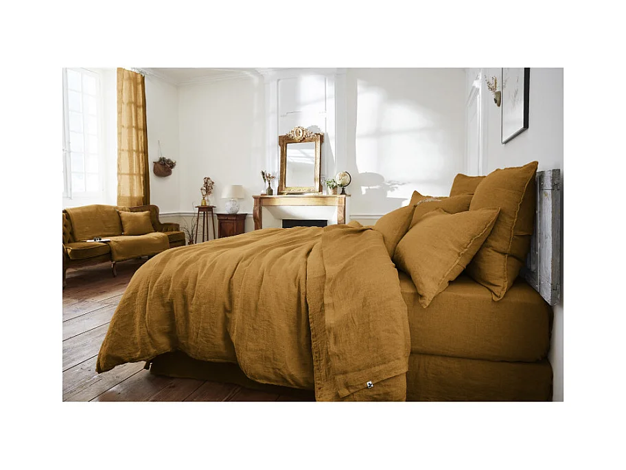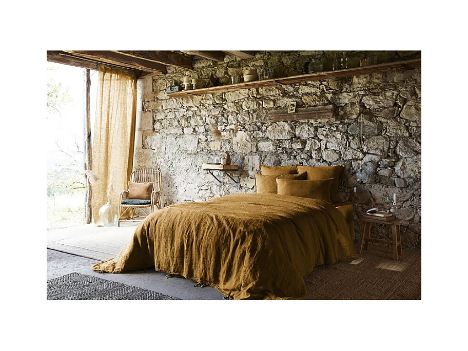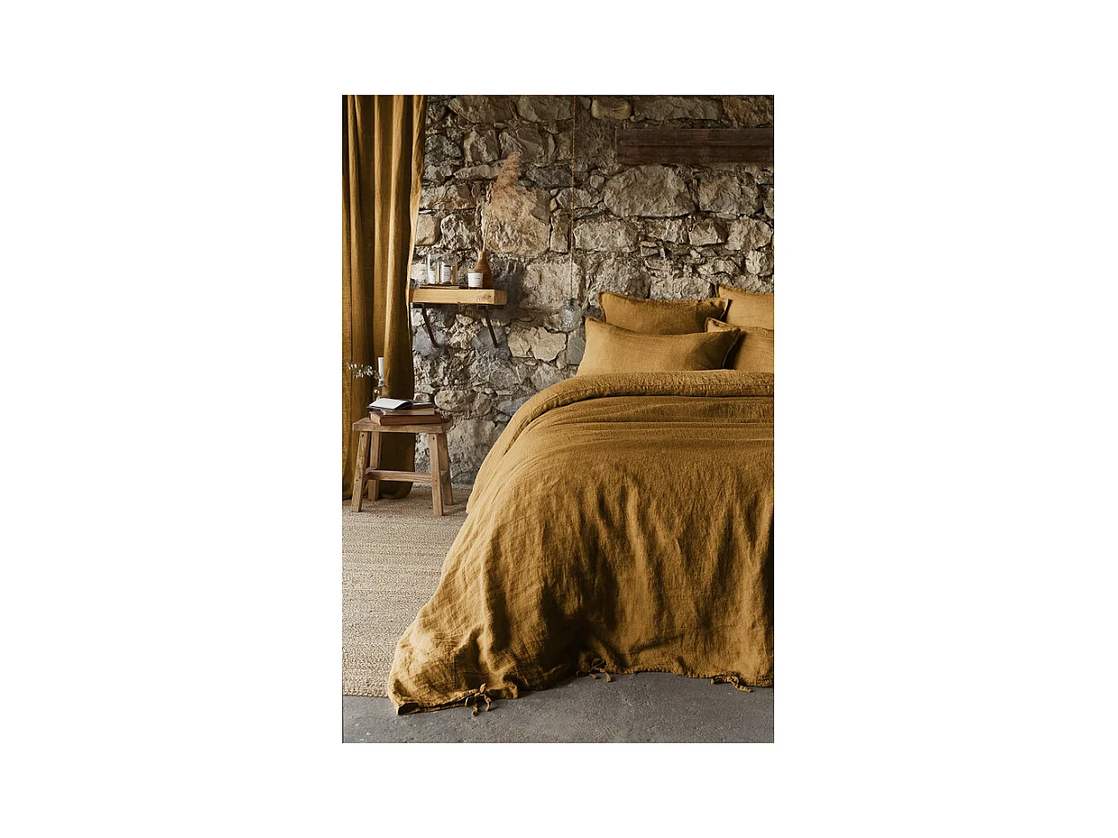 Taie d'oreiller stonewashed Zeff ocre 65 x 65 cm Vivaraise