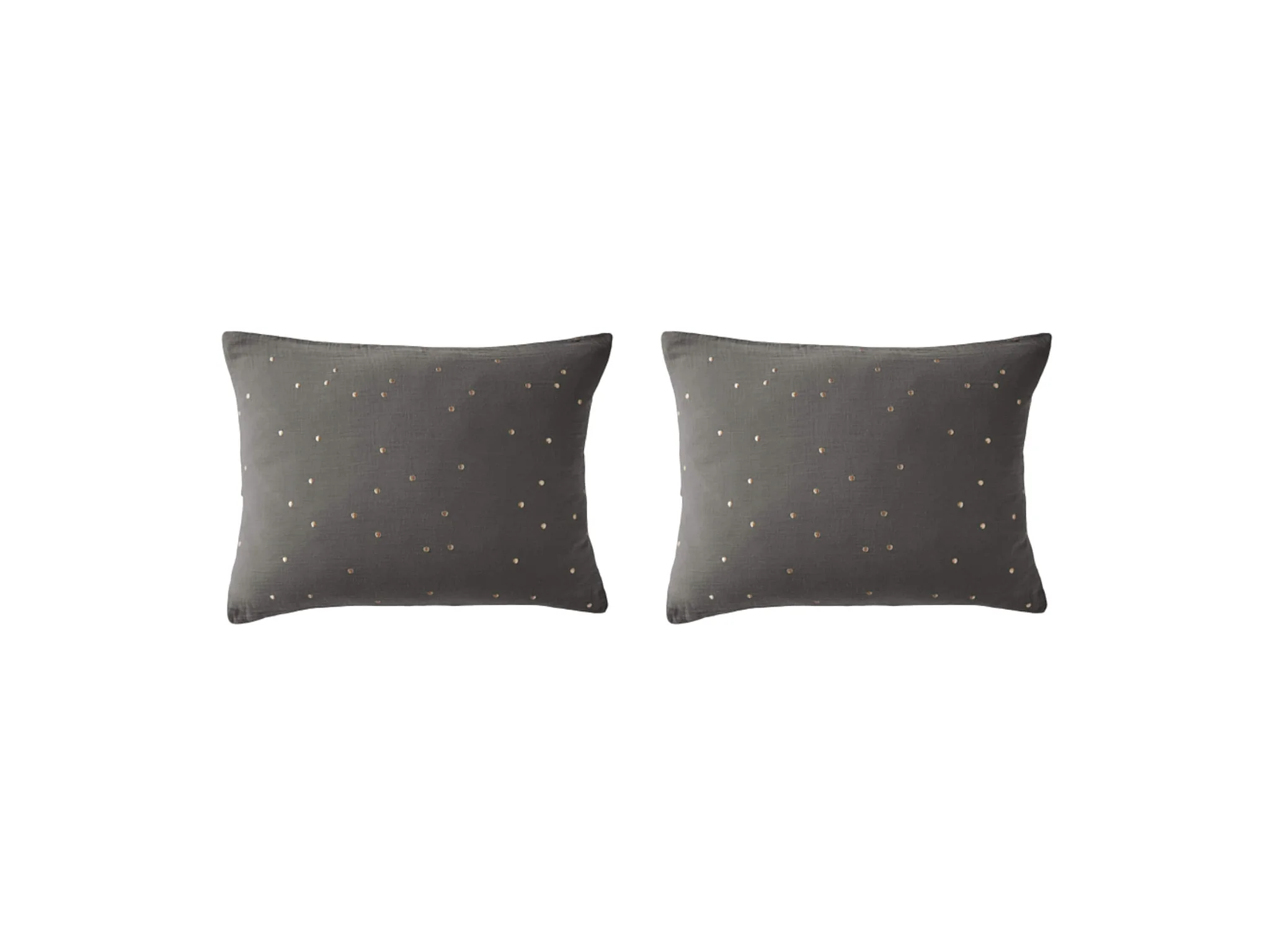 Lot de 2 taies d'oreillers à pois brodés double gaze de coton gris anthracite 50x70