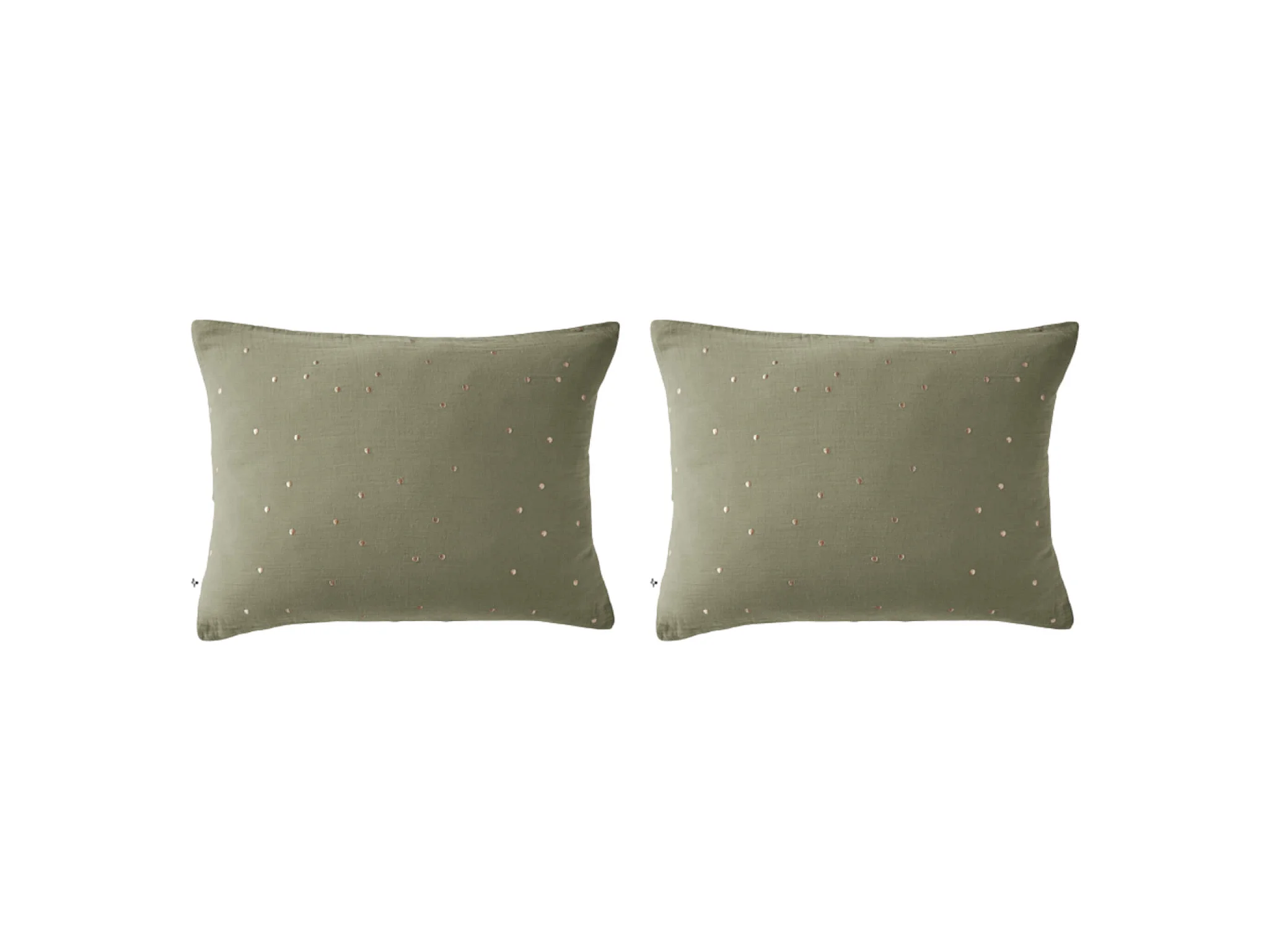 Lot de 2 taies d'oreillers à pois brodés double gaze de coton kaki 50x70